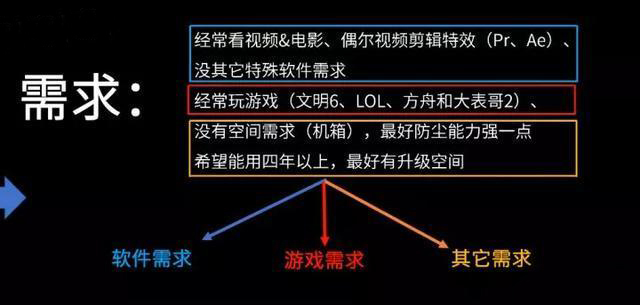 自己可以根据自身需求选择硬件设备,说到底,也就是 软件需求、游戏需求、其它需求
