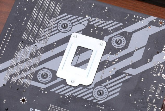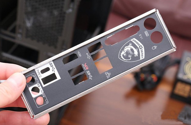 将主板安装到机箱之前,我们首先在主板盒子中找到IO挡板,并将IO挡板固定机箱上。