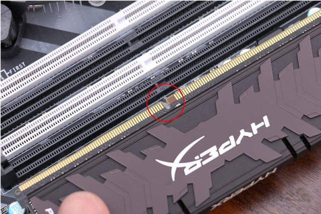 此外,在安装内存的时候,我们需要内存金手指上面的缺口对应内存插槽上的凸点,这是防呆设计,反了插不进去的。