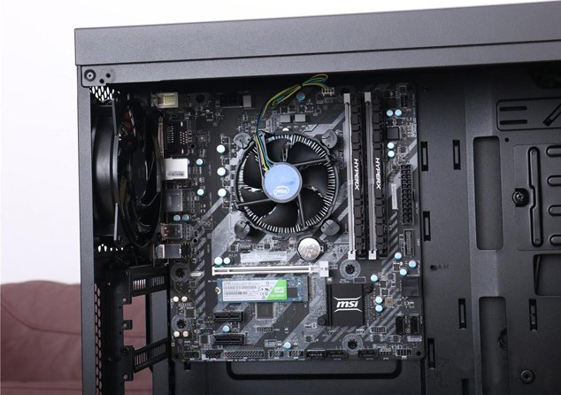 再安装 CPU散热器,然后装上显卡、电源,先测试一下能不能亮机,能亮才装到机箱里,安排走线,安装风扇。
