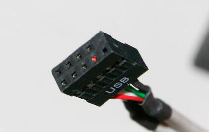 找到主板上的前置音频的插针(与前置音频接口对应的插针,一般主板上有标识),USB2.0接口也类似的方法,主板上有标注USB2.0插针,插入即可,如下图所示。