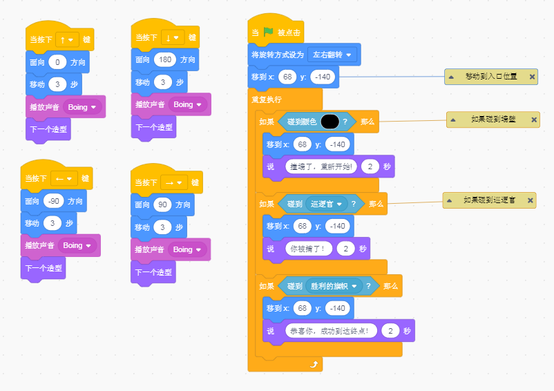 3.如果人物碰到迷宫墙壁则会游戏失败