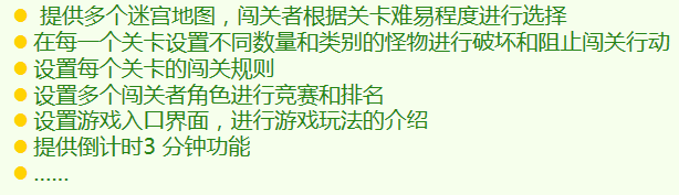 5.将迷宫改成多角色、多关卡的复杂游戏,功能可以根据自己的想法自行设计例如: