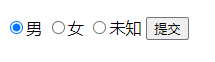 1 | <input name="gen" type="radio" value="男" checked="checked" >男 |