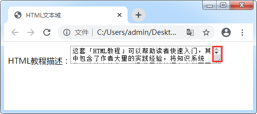 rows:属性用来设置文本域的可见行数,也就是文本域的高度。当文本内容超出设置高度时,会出现纵向滚动条。用户拖动滚动条可以查看全部内容