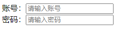 1 | 账号:<input type="text" placeholder="请输入账号"><br/> |