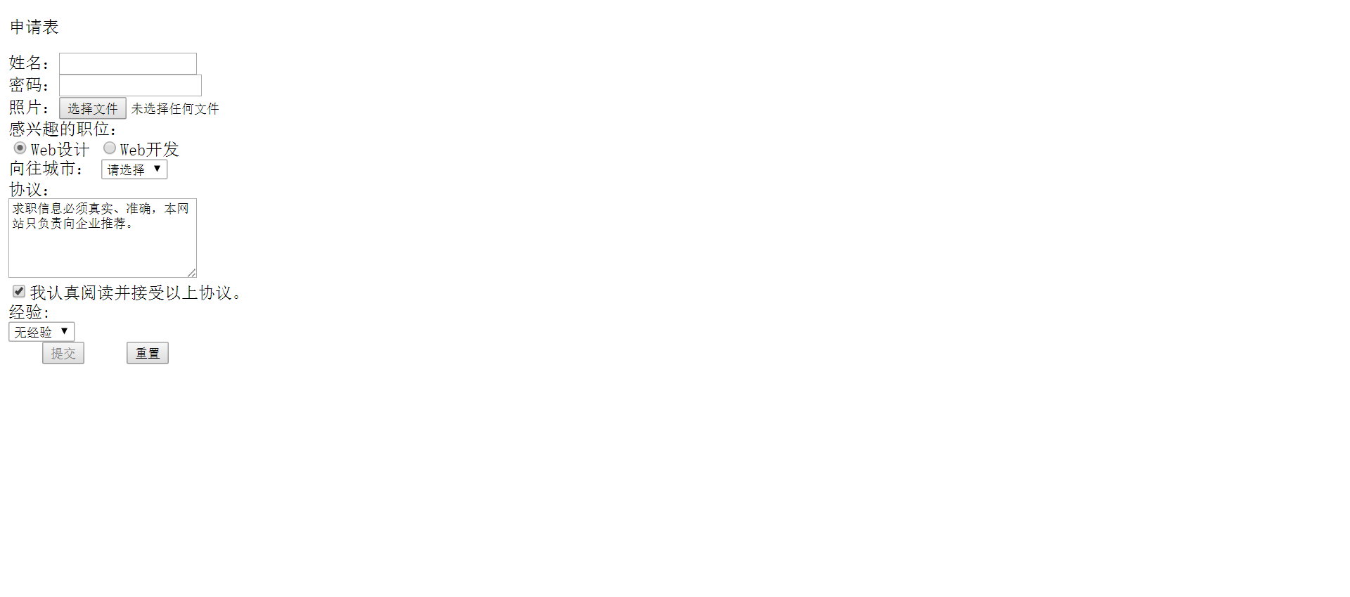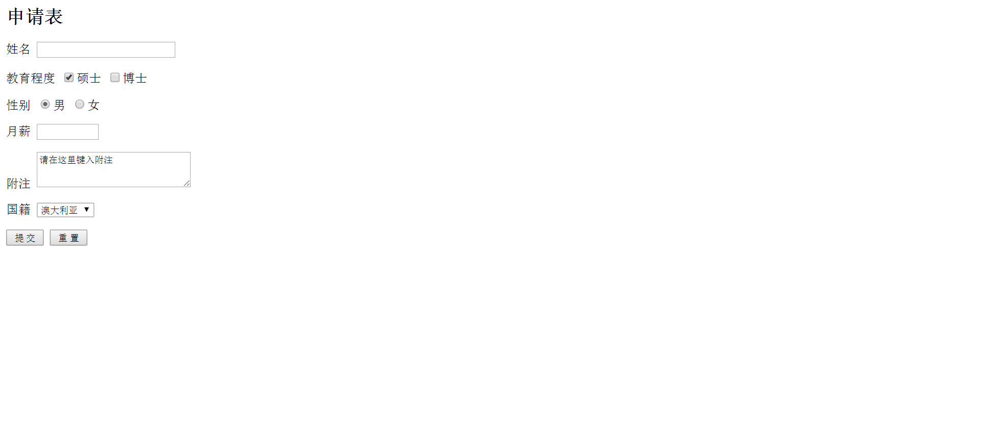 - reset:定义重置按钮(重置所有的表单值为默认值)