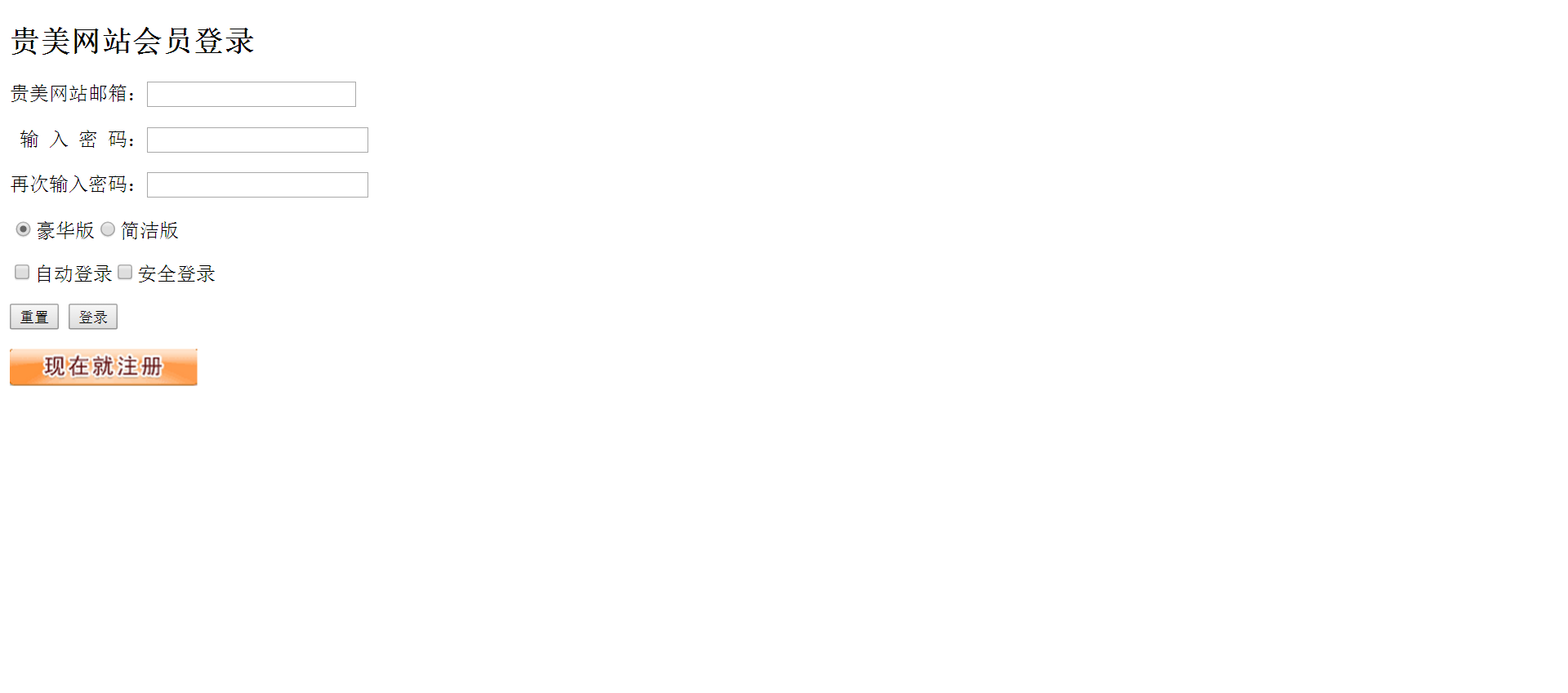 密码框与文本框拽在输入时展示的是不一样的,我们在网页登录或者用户登录时输入用户名都是可以看见内容的而密码框是看不见内容的,用黑色实心的圆点来显示(如图所示)密码框我们一般都是不设置默认值的