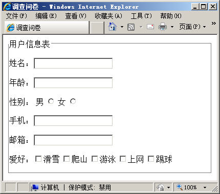 可以将表单内的相关元素分组,标签会在相关表单元素周围绘制边框,再给一个标题