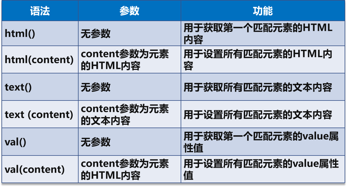 html()、text()、val()的区别