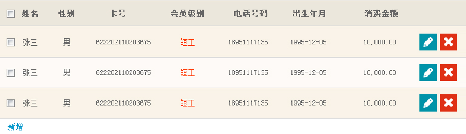 - 单击“新增”时,增加一条表格中现有信息
