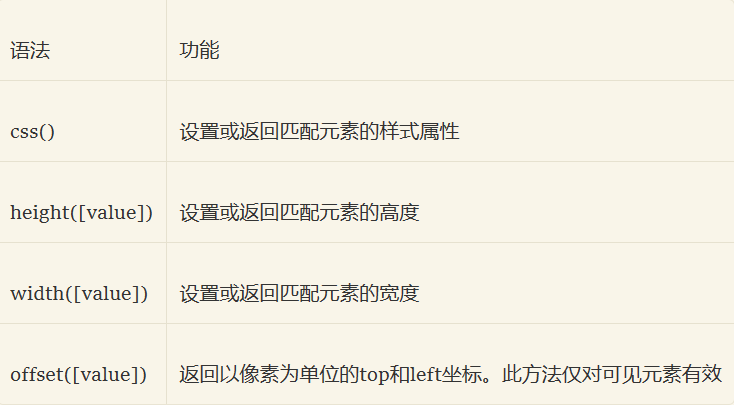除css()外,还有获取和设置元素高度、宽度、相对位置等的样式操作方法