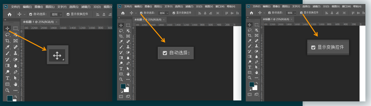 “移动工具”在以后的排版设计中,使用频度非常高,所以,它排列在工具栏中的第一个位置。