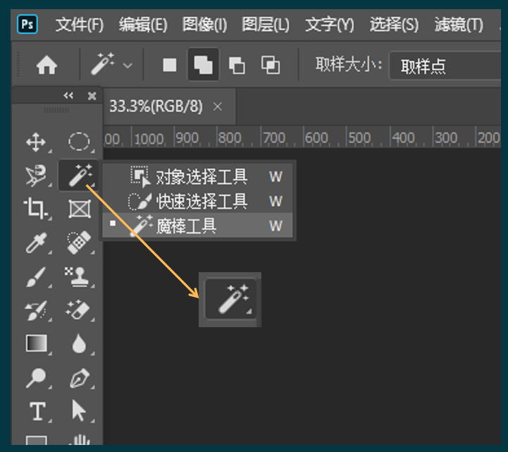 在工具栏中,找到魔棒工具,单击鼠标右键,选择魔棒工具。