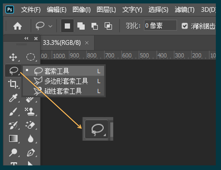 在工具栏中,找到套索工具,单击鼠标右键,选择套索工具,或者执行快捷命令L。