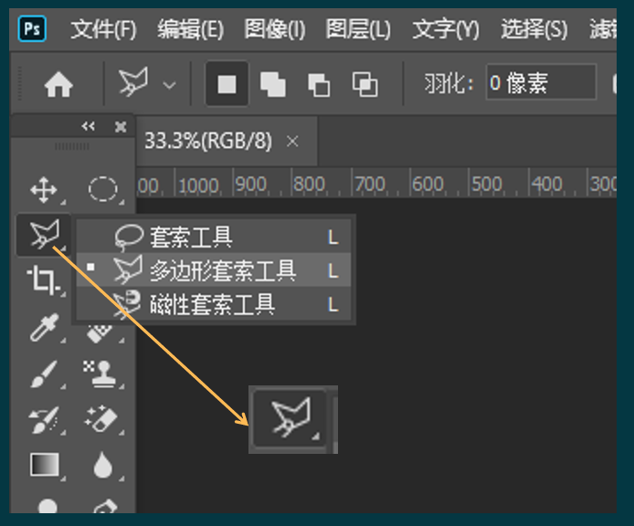 在工具栏中,找到多边形套索工具,单击鼠标右键,选择多边形套索工具。