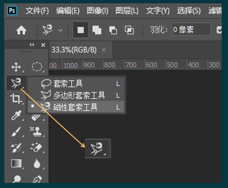 在工具栏中,找到磁性套索工具,单击鼠标右键,选择磁性套索工具。