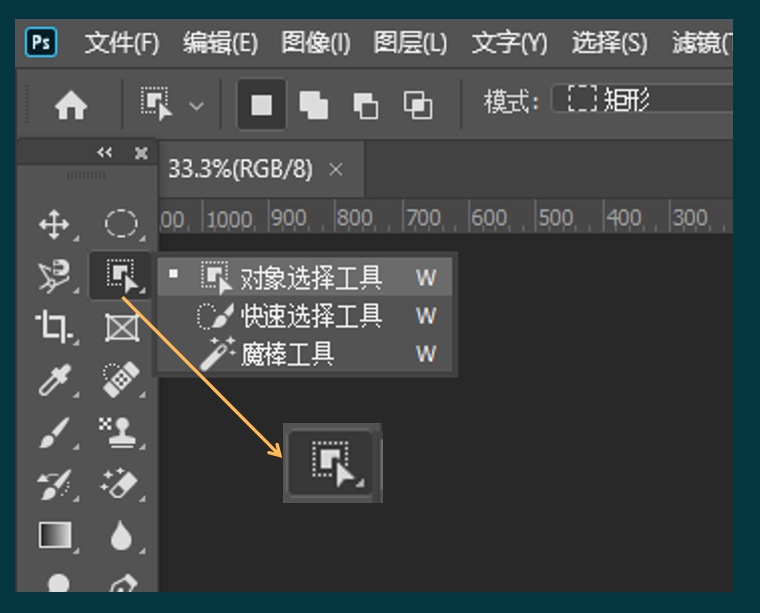 在工具栏中,找到对象选择工具,单击鼠标右键,选择对象选择工具。