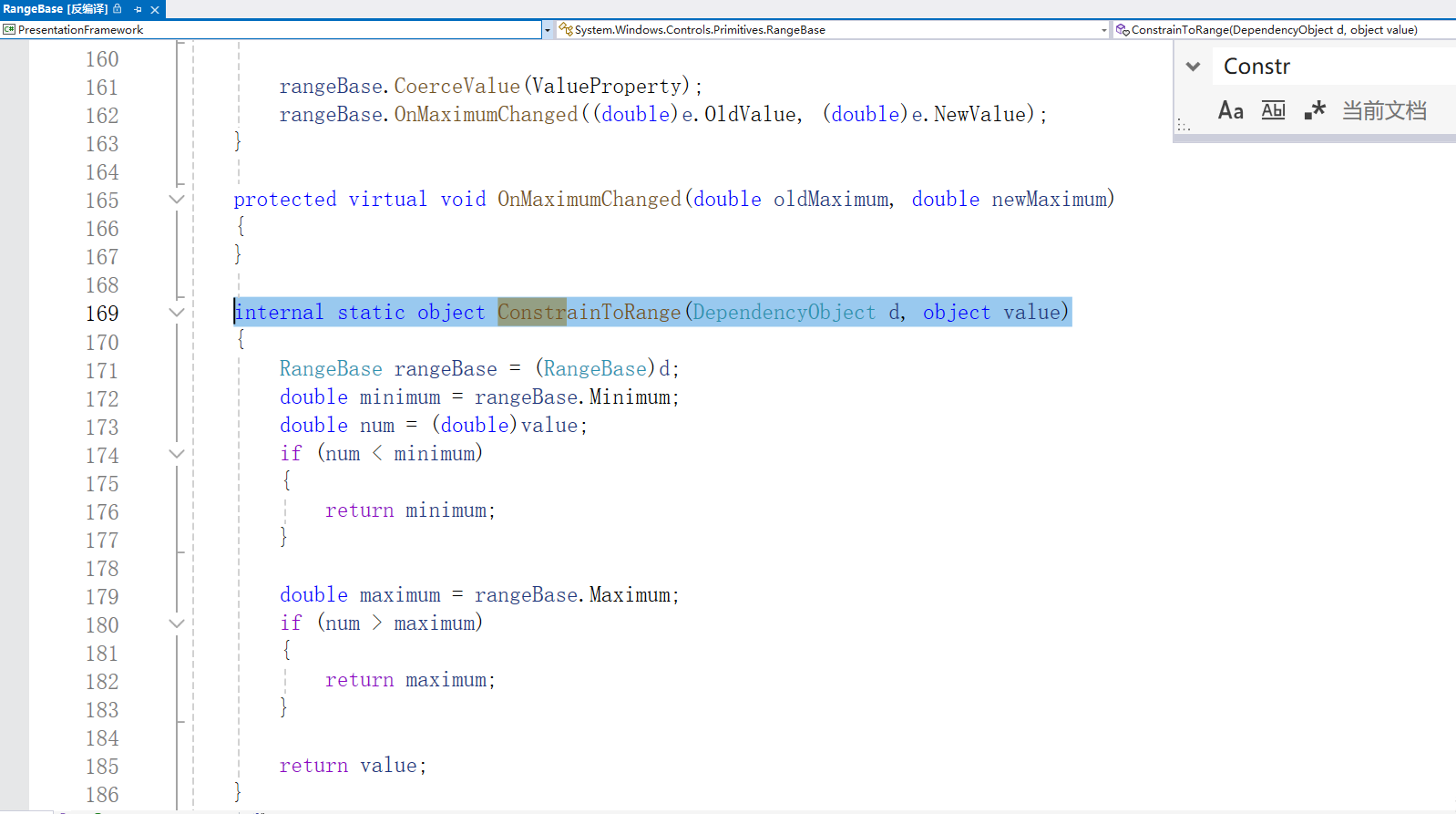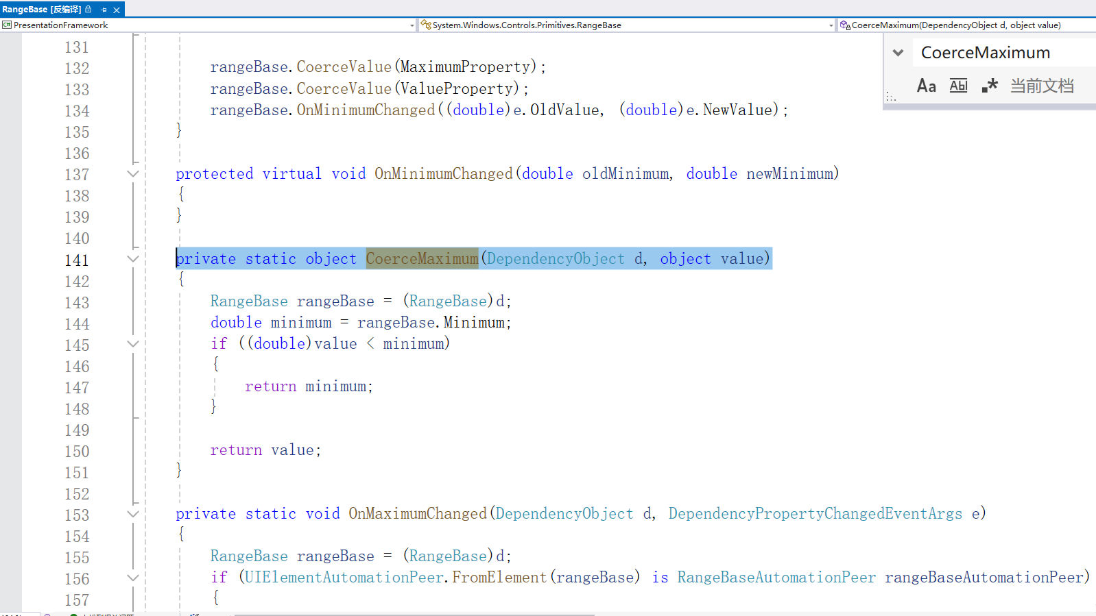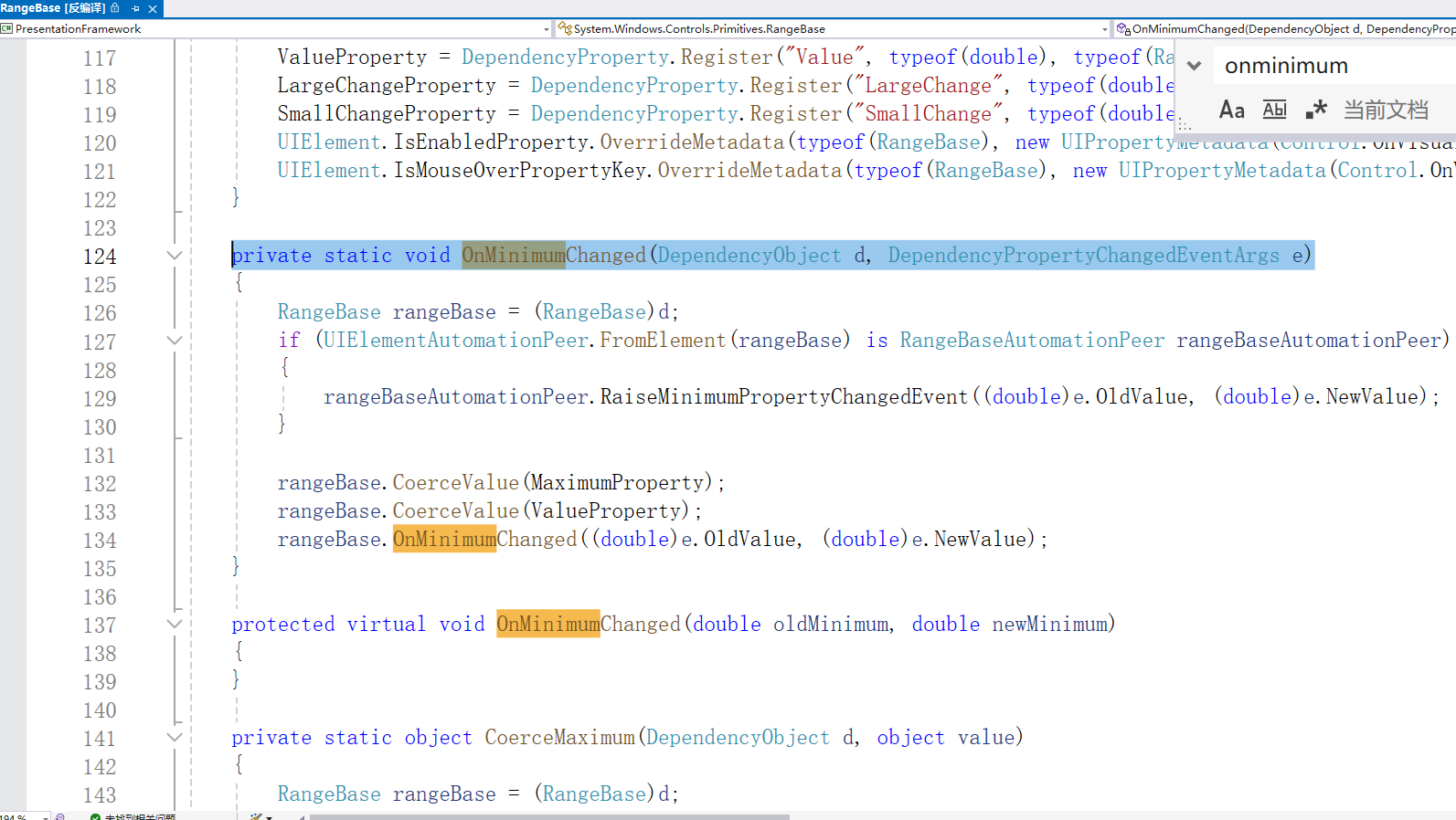 Minimum 属性根本不使用值强制。相反,一旦值发生变化,就触发PropertyChangedCallback,然后通过手动触发 Maximum 和 Value 属性的强制过程,使它们适应 Minimum 属性值的变化: