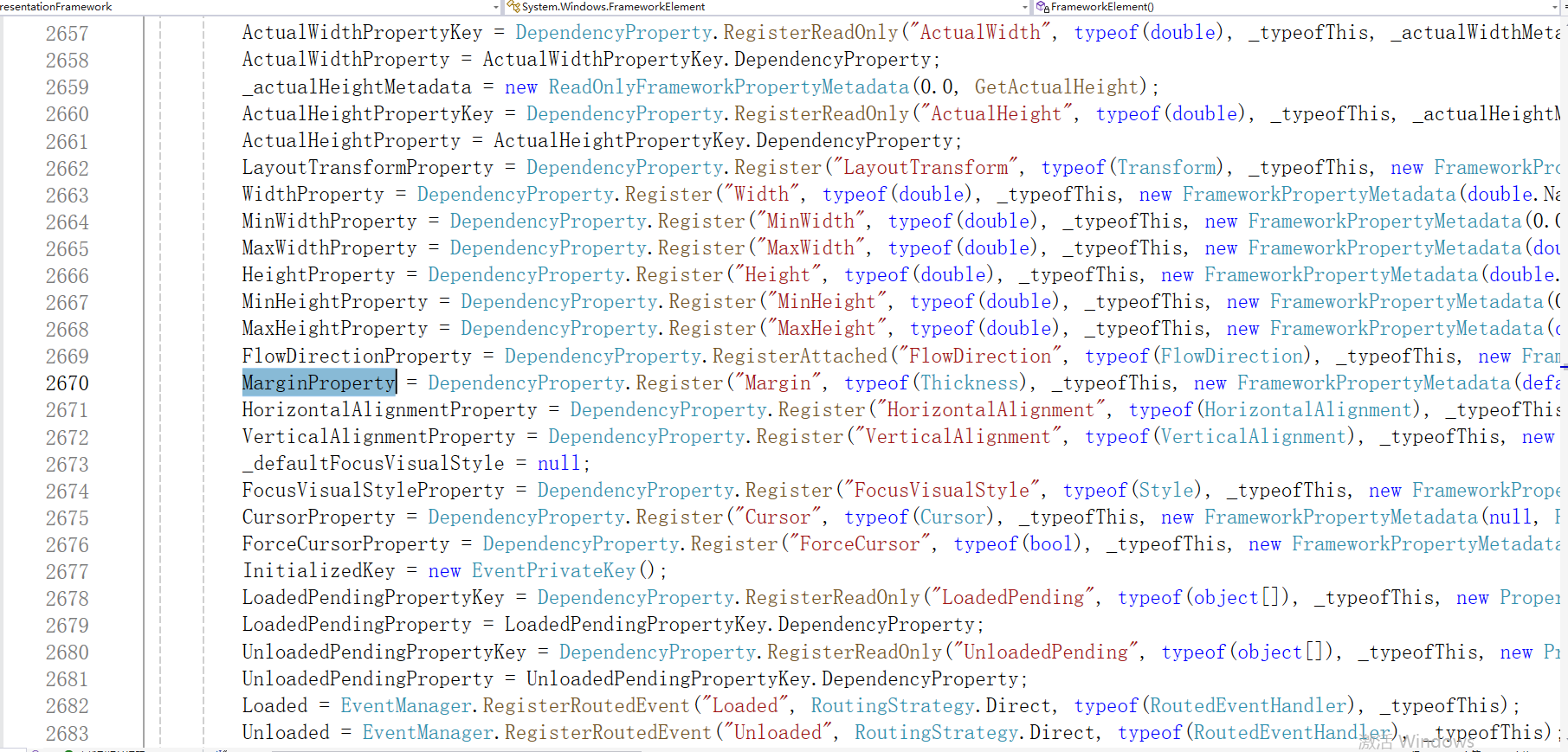 下面的代码显示了如何创建 DependencyProperty 对象。在此,FrameworkElement类使用静态构造函数来初始化 MarginProperty: