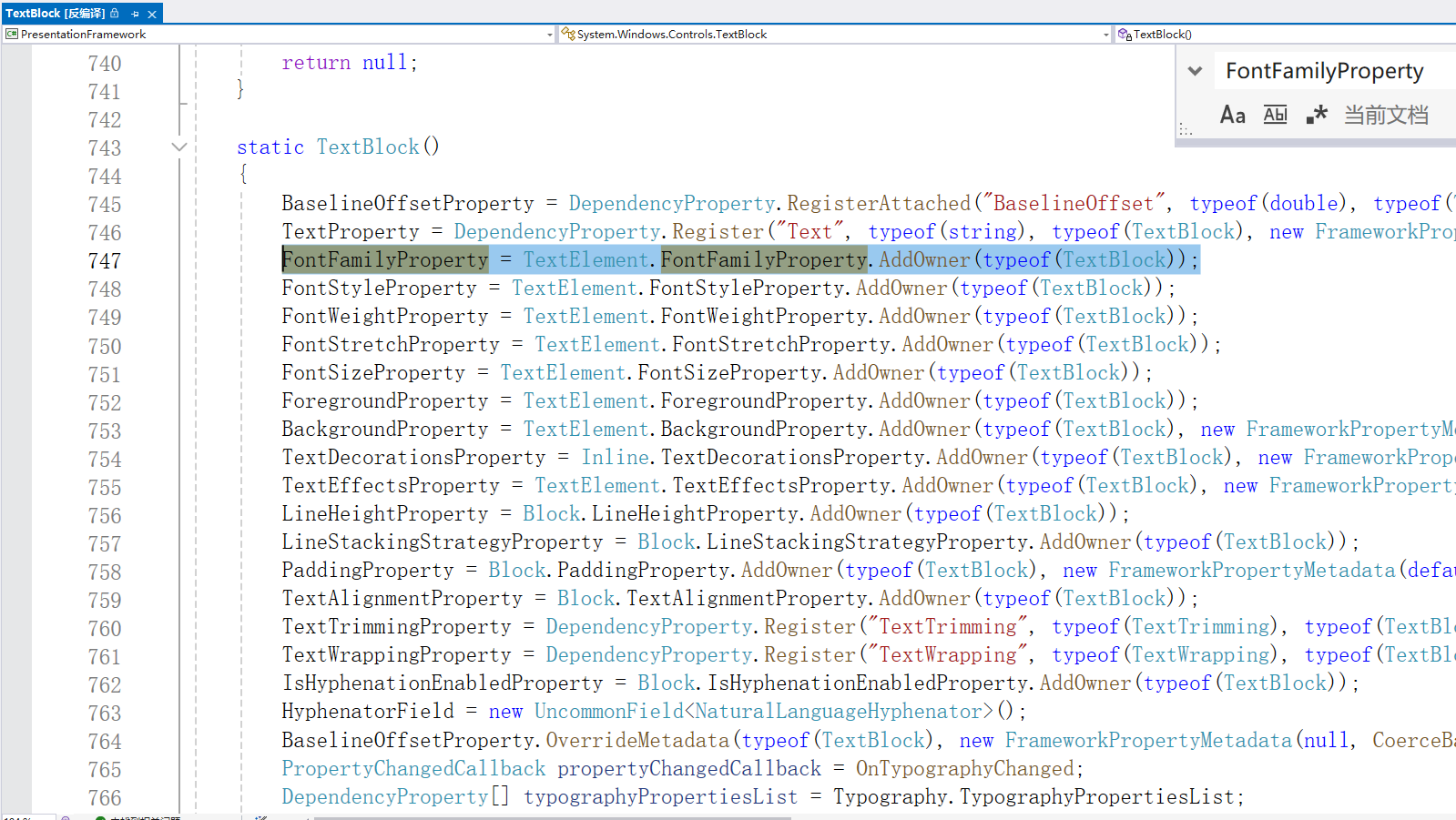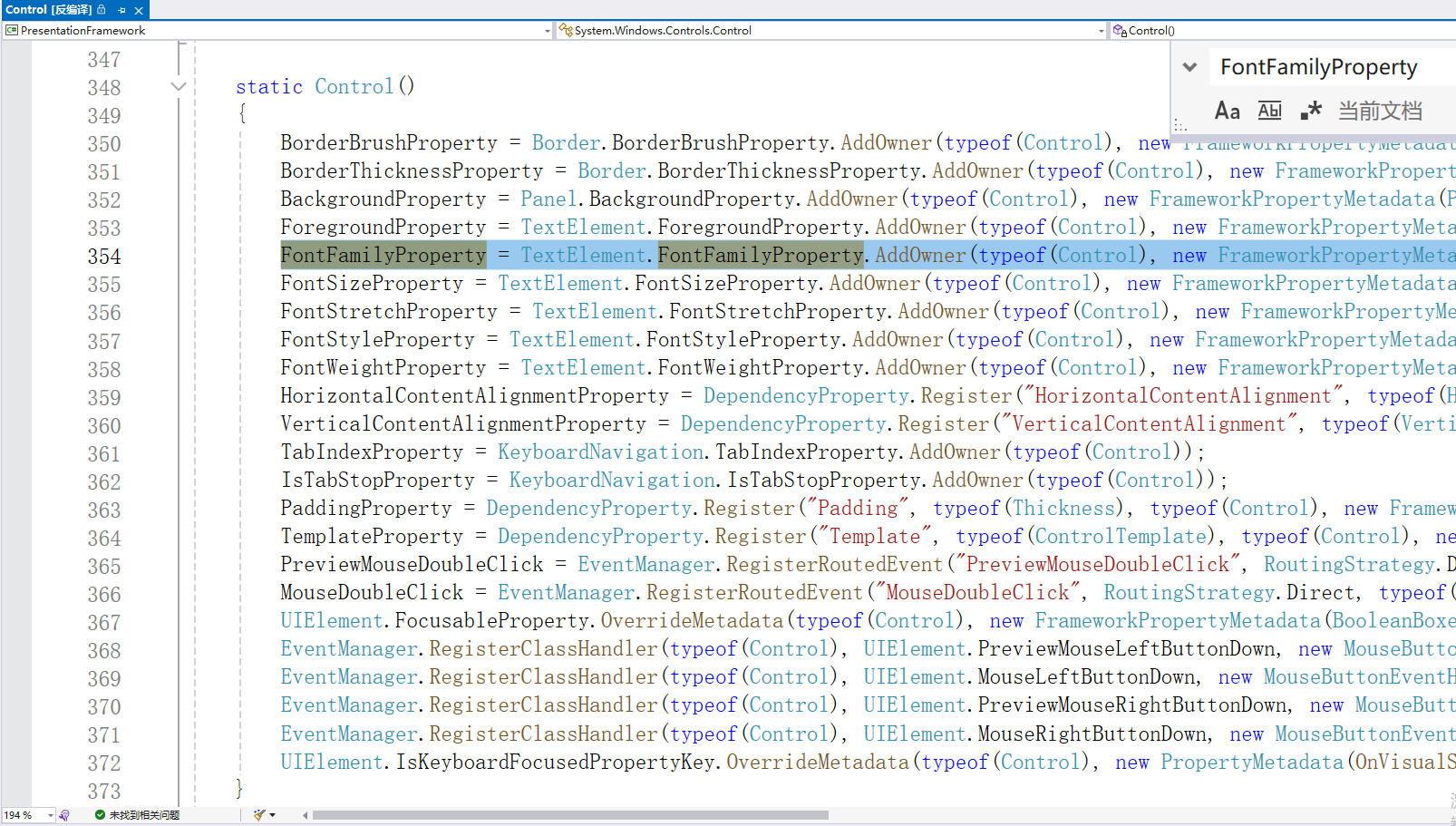 尽管一些类具有不同的继承层次,但他们会共享同一依赖项属性。例如,TextBlock.FontFamily属性和 Control.FontFamily 属性指向同一个静态的依赖项属性,该属性实际上实在 TextElement 类中定义的 TextElement.FontFamilyProperty 依赖项属性。TextElement 类的静态构造函数注册该属性,而 TextBlock 类和Control 类的静态构造函数知识通过调用 DependencyProperty.AddOwner()方法重用该属性: