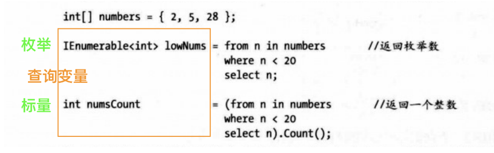 - 如果查询表达式返回枚举,查询一直到处理枚举时才会执行。(延迟执行)