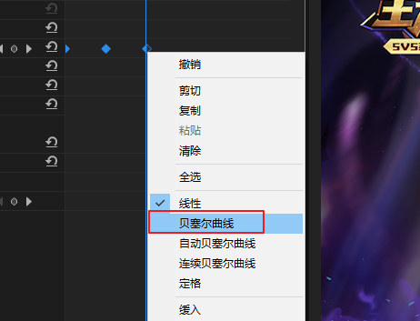 将三个关健帧切换到“贝塞尔曲线”模式