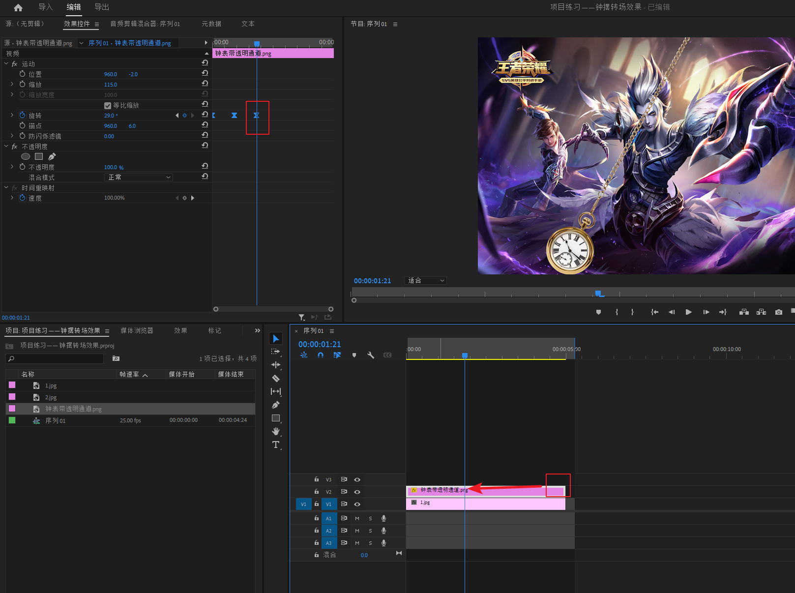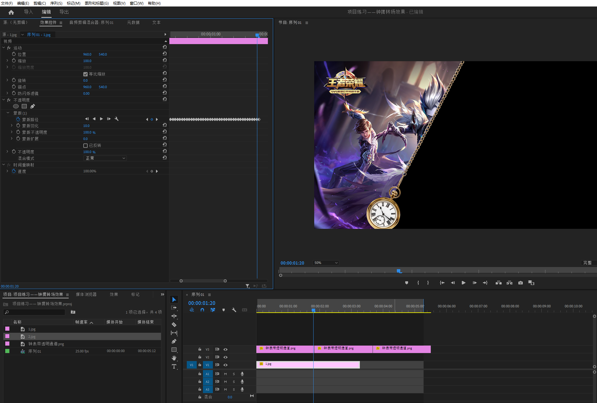项目练习——钟摆转场效果