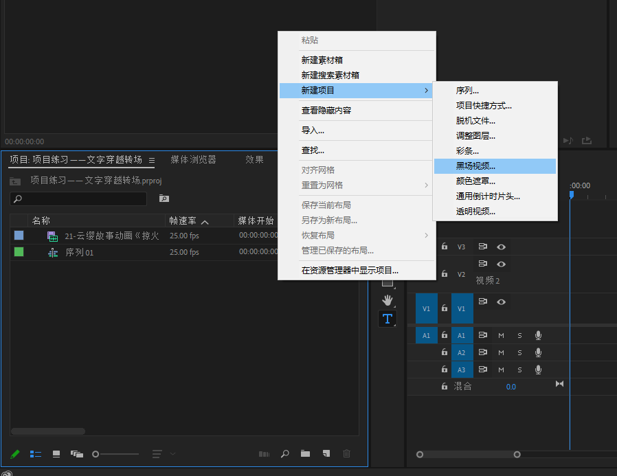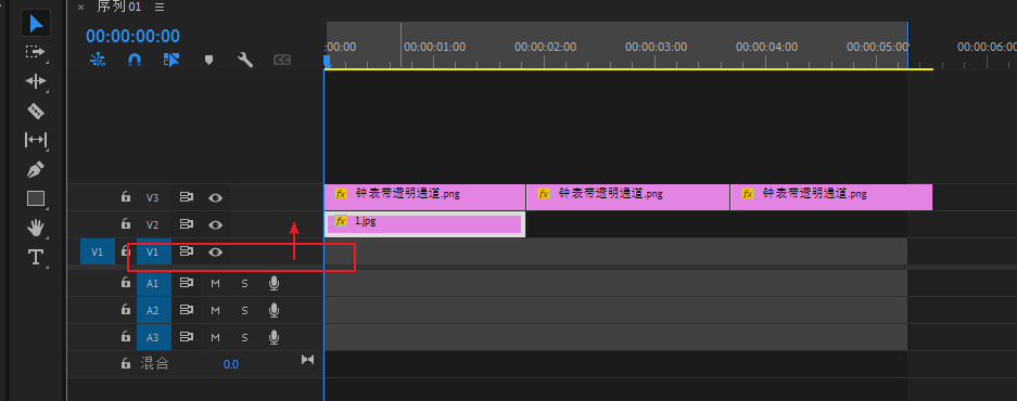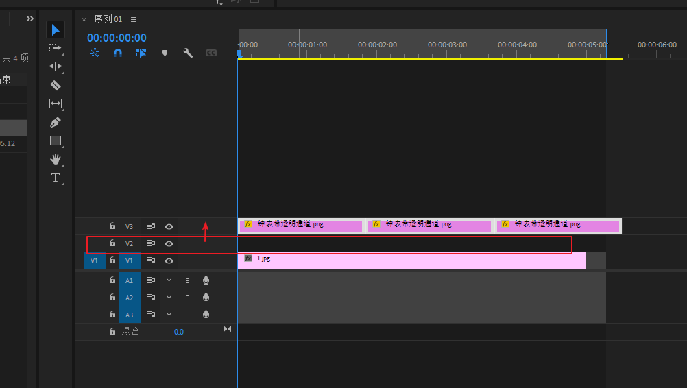 将黑场视频拖进V2素材轨道