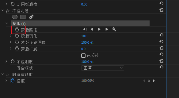 在黑场视频上制作一个蒙版关键正跟随文字放大,蒙版勾选已翻转
