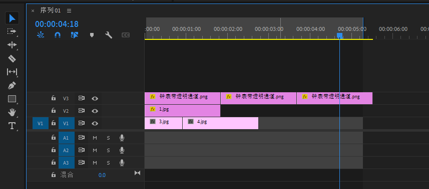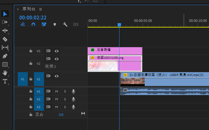 视频V1轨道拖入视频素材,放在3秒的地方
