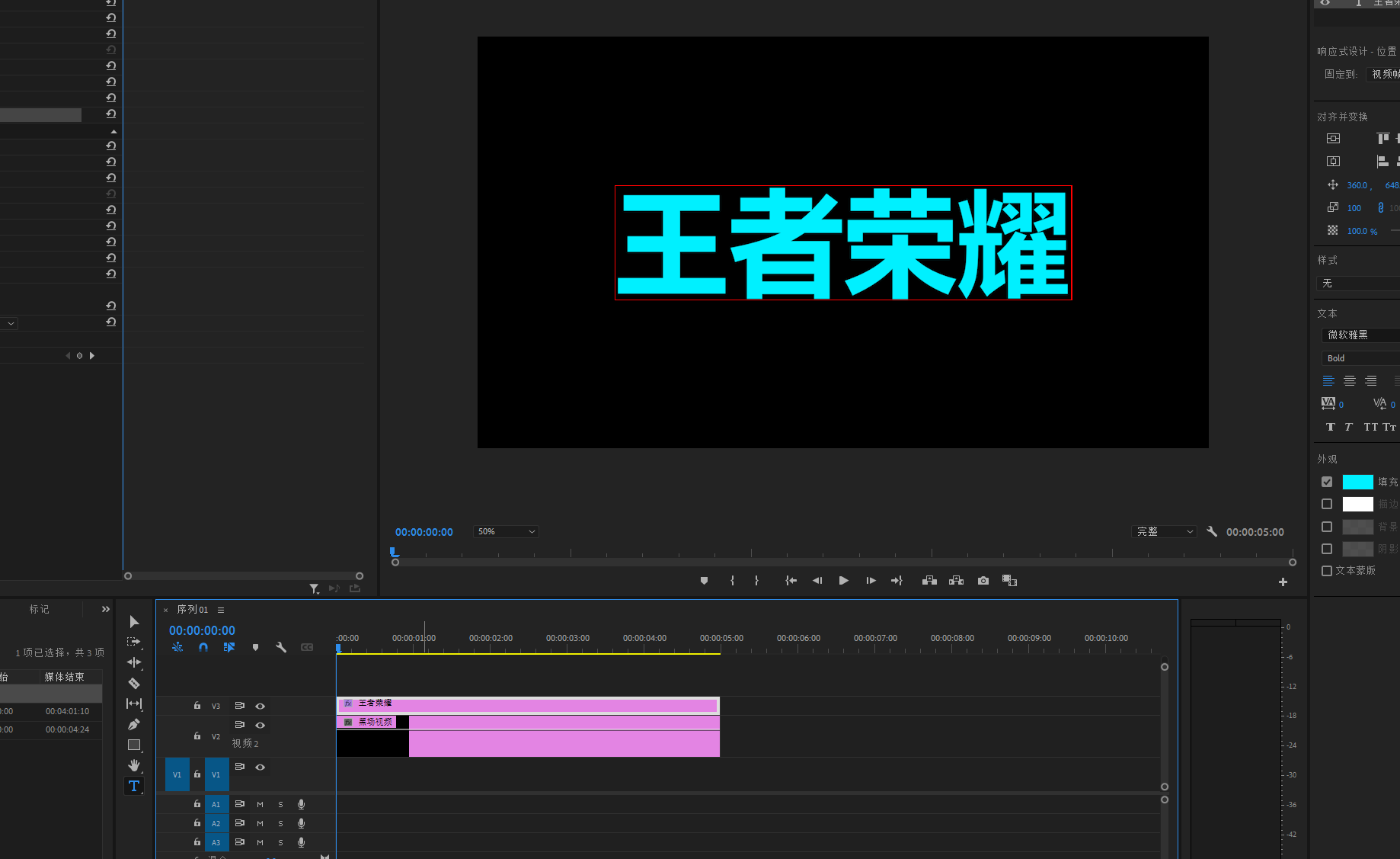 新建一个文字层放在V3轨道