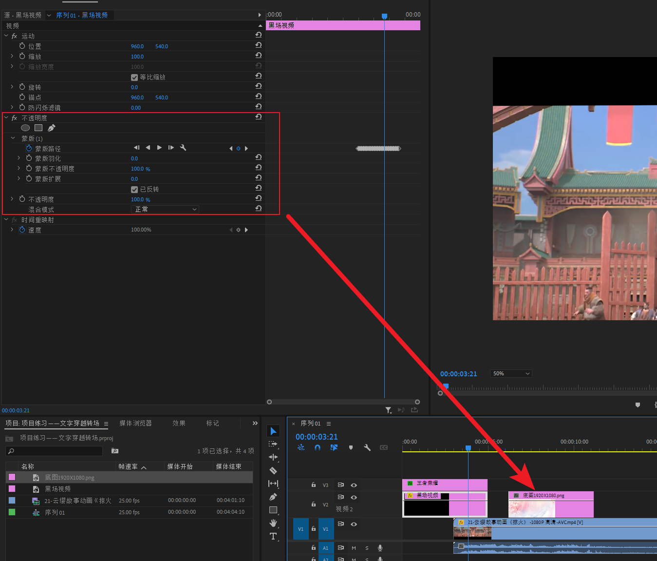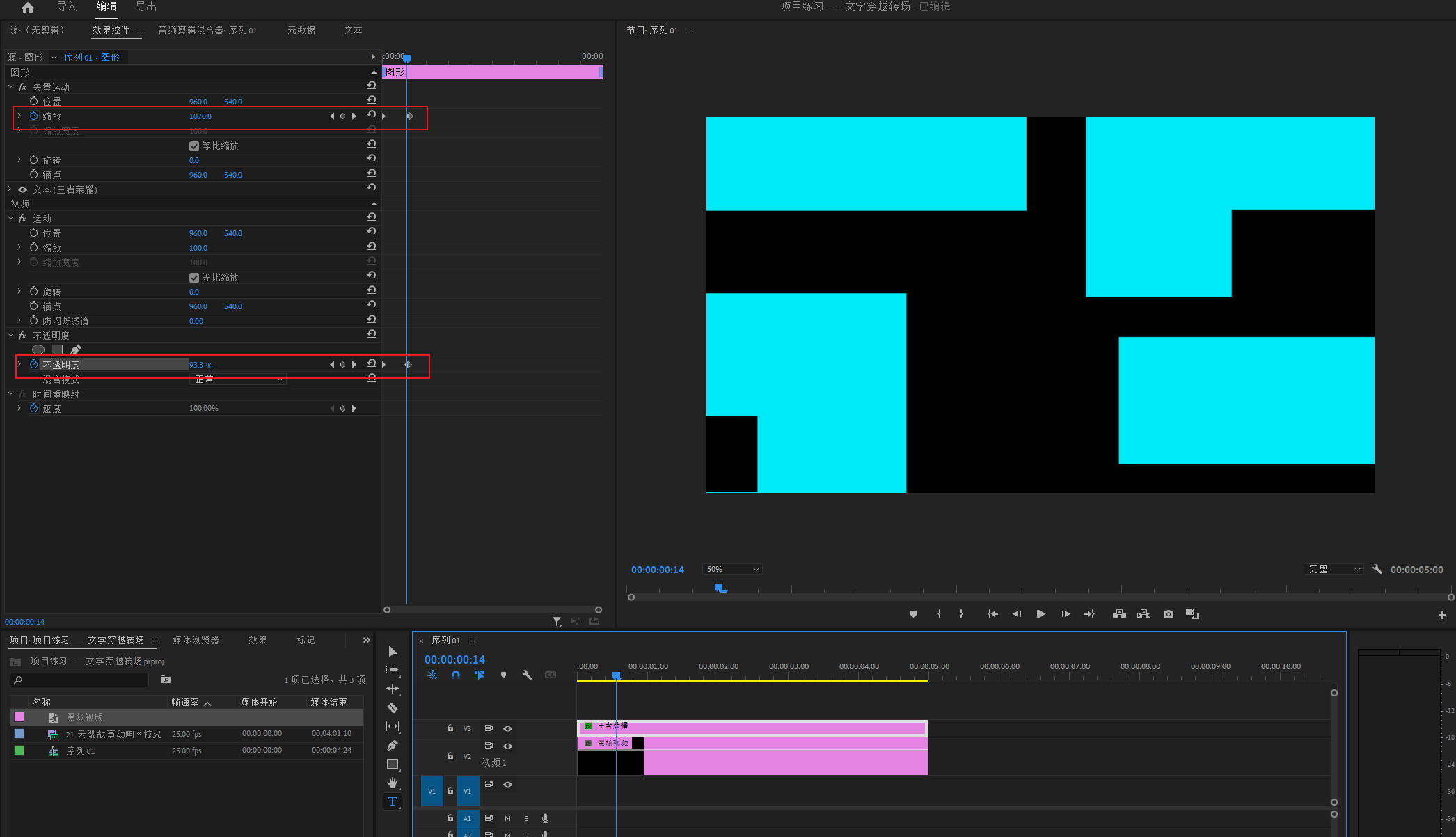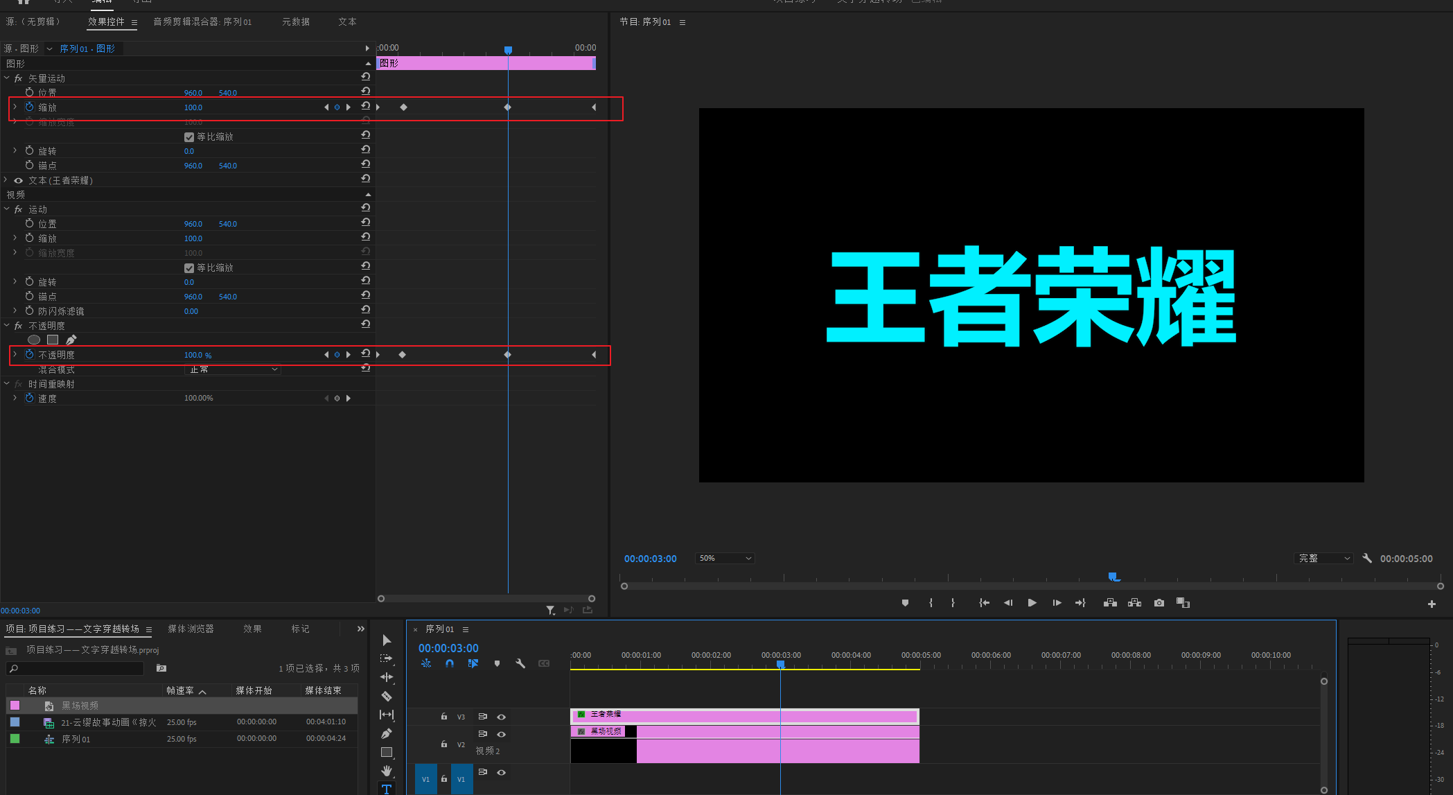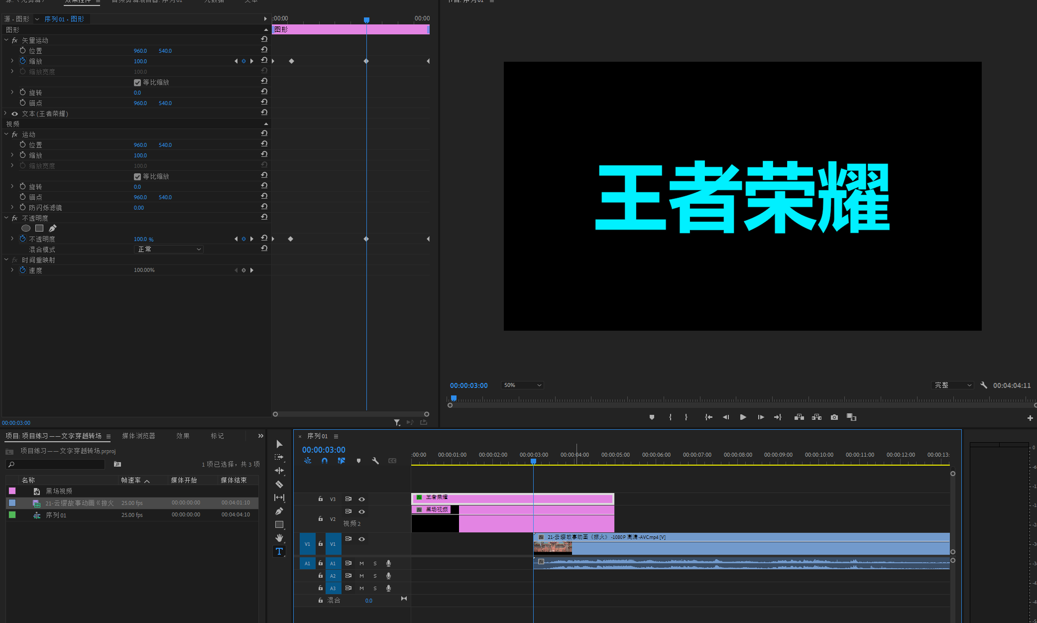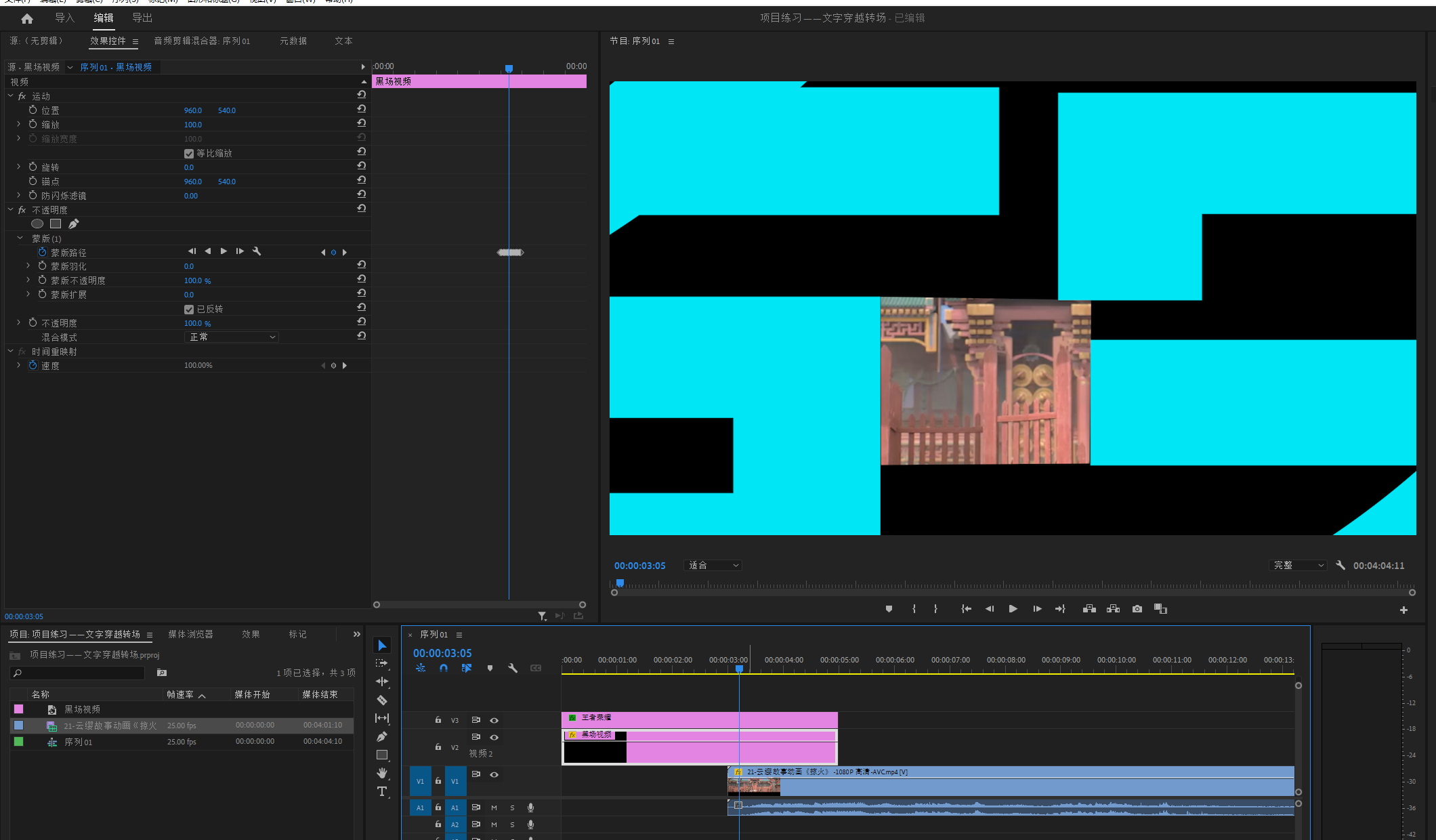 项目练习——文字穿越转场