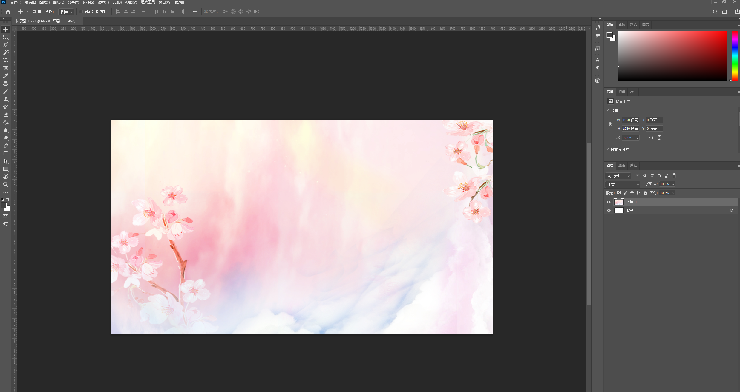如果觉得黑色的底图不好看,还可以更换底图,先在PS做好一张1920*1080像素大小(就是要和视频的像素一样)的底图