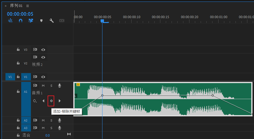 1.鼠标选中音频上的关健帧,然后按Delete键删除。