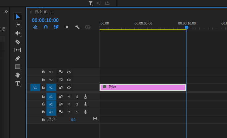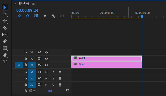 将视频素材放到视频轨道上,然后将素材长度拖长到10秒