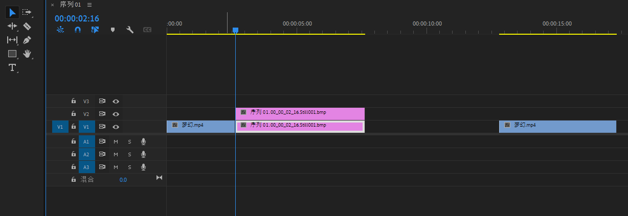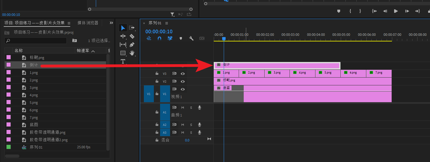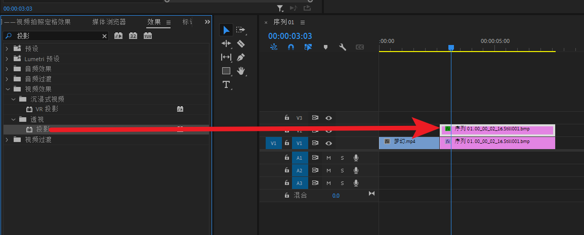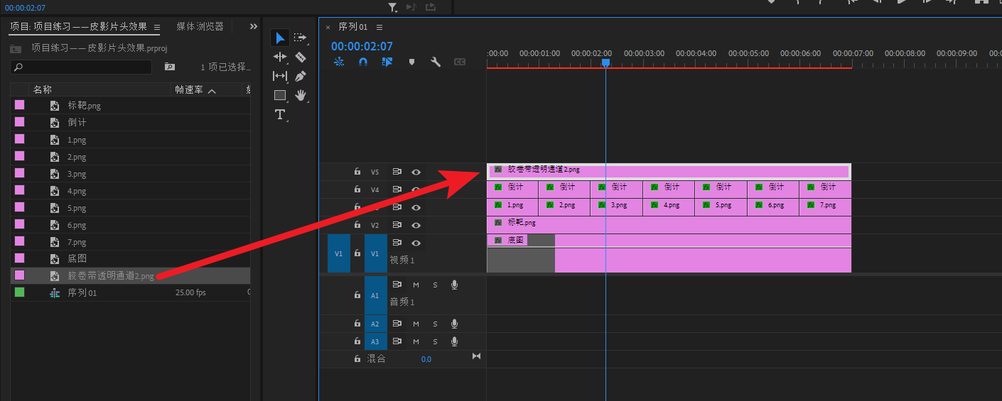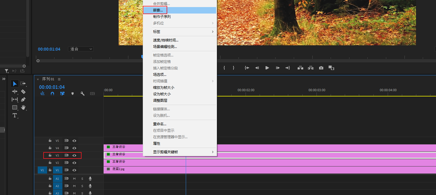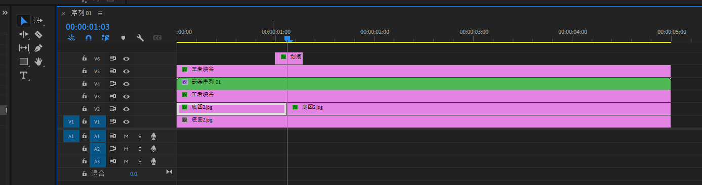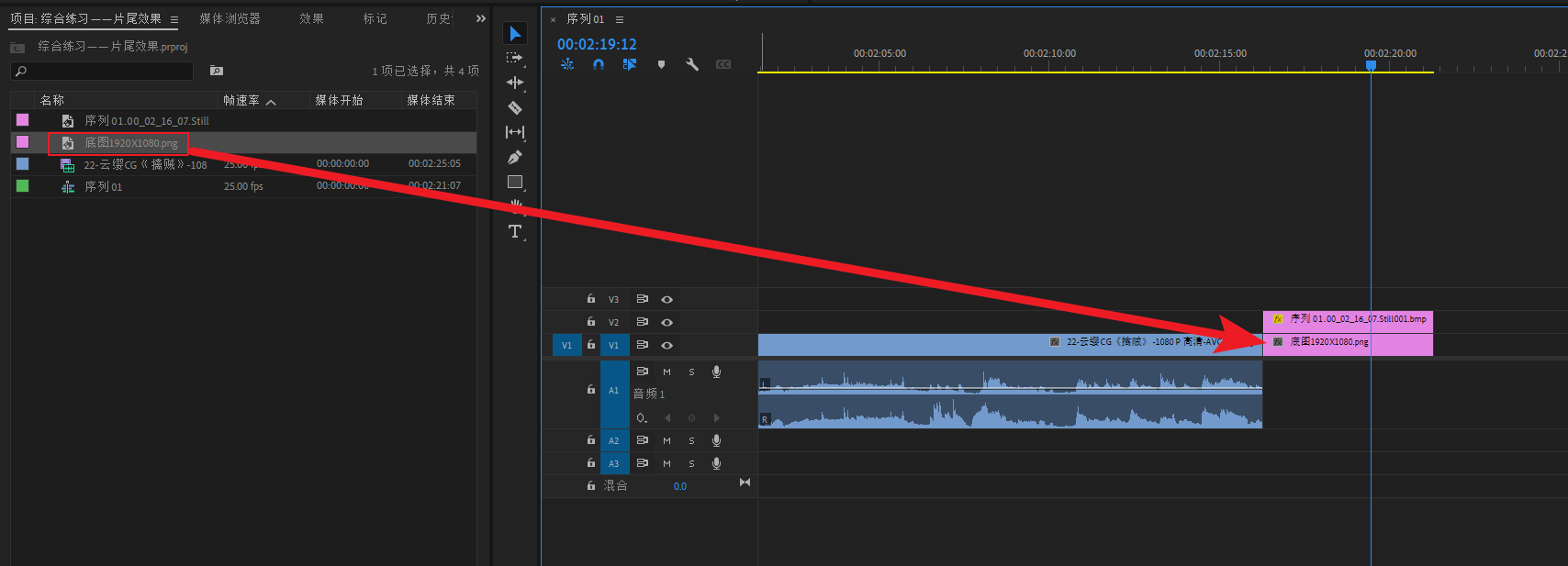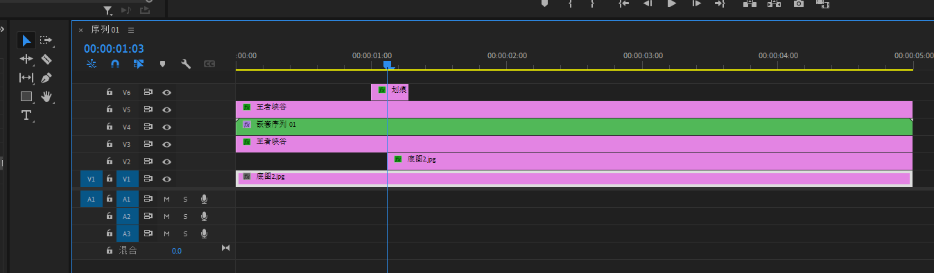 将底图素材导进PR,然后拖进V1轨道