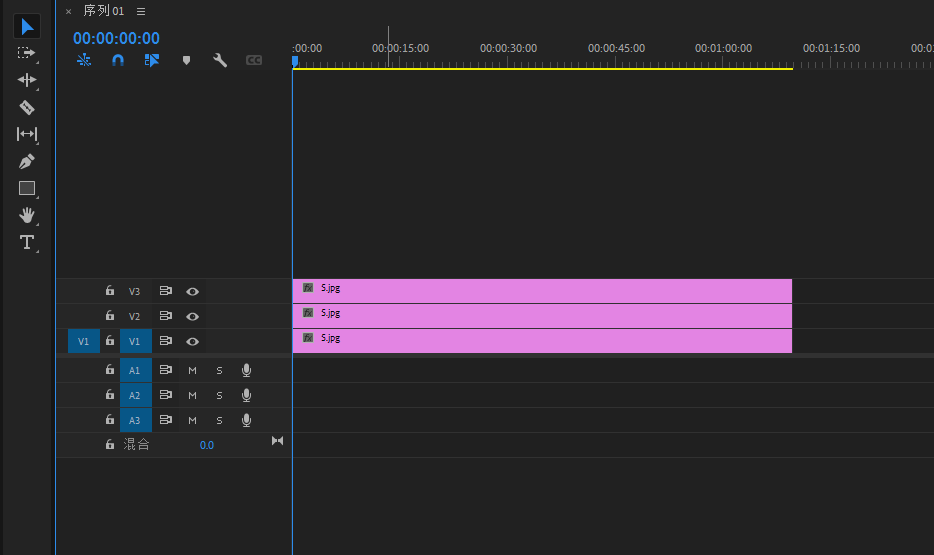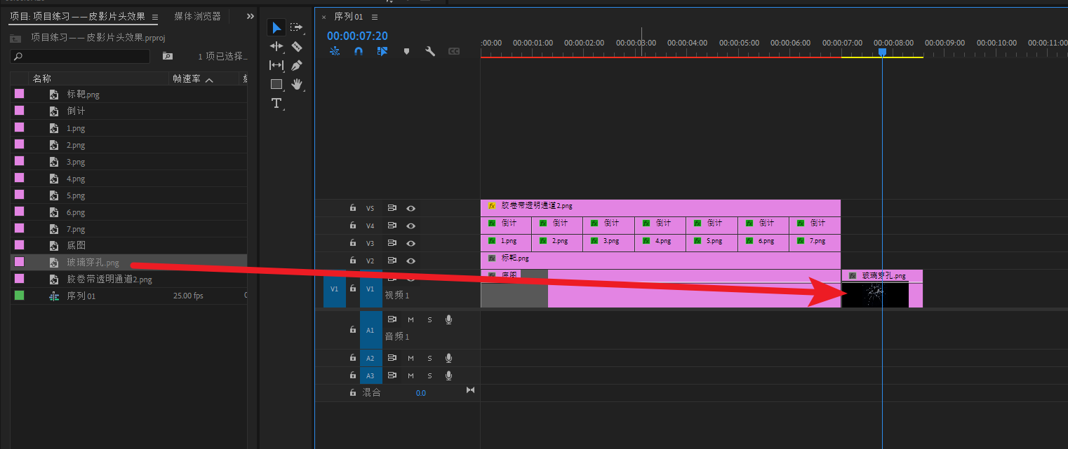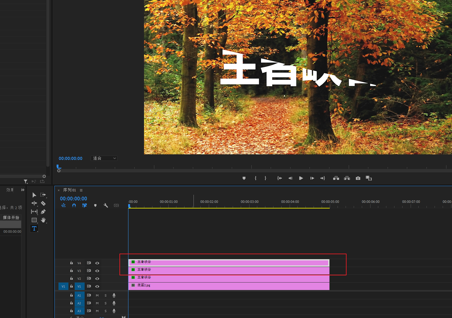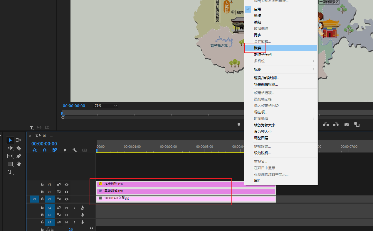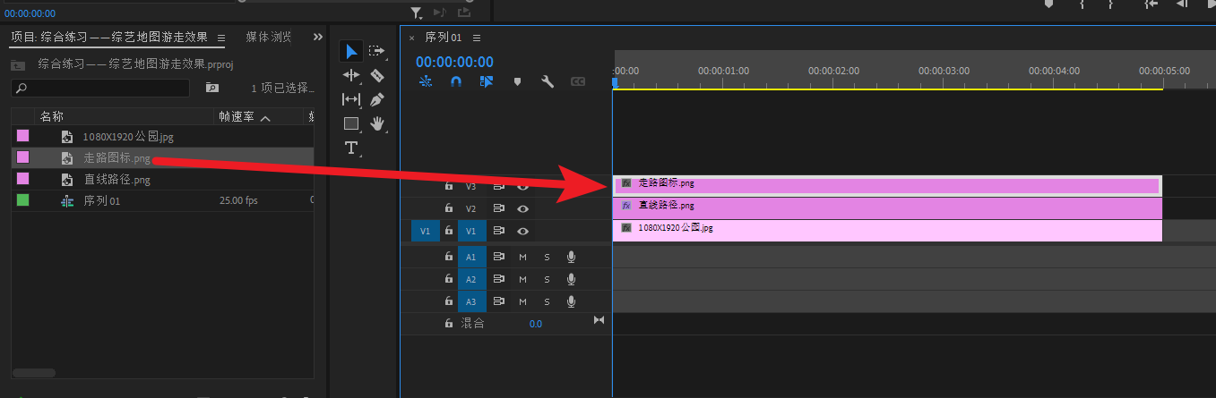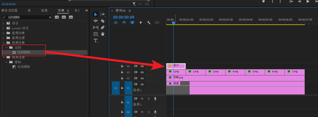 将底图素材导进PR,然后拖进V1轨道