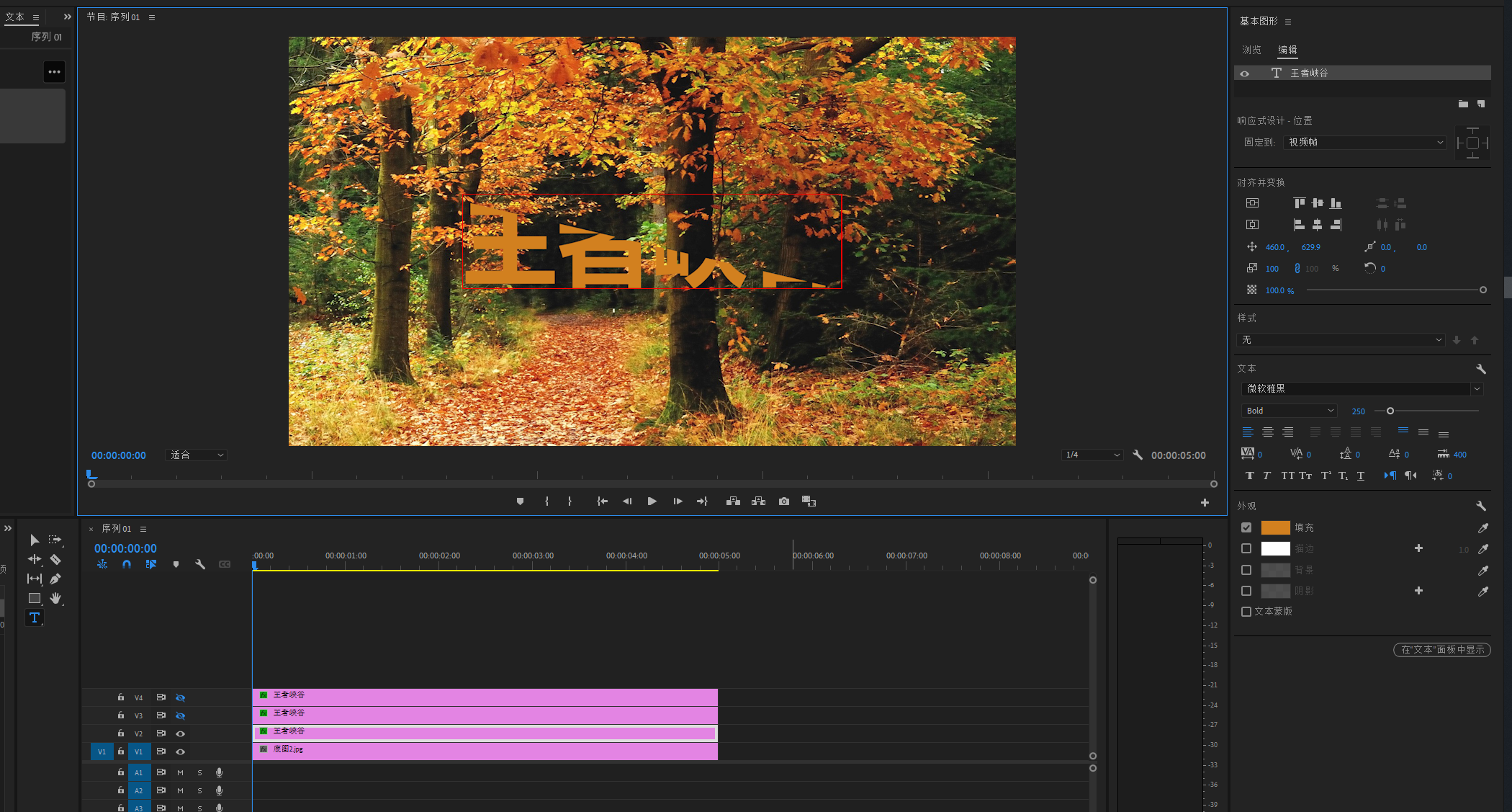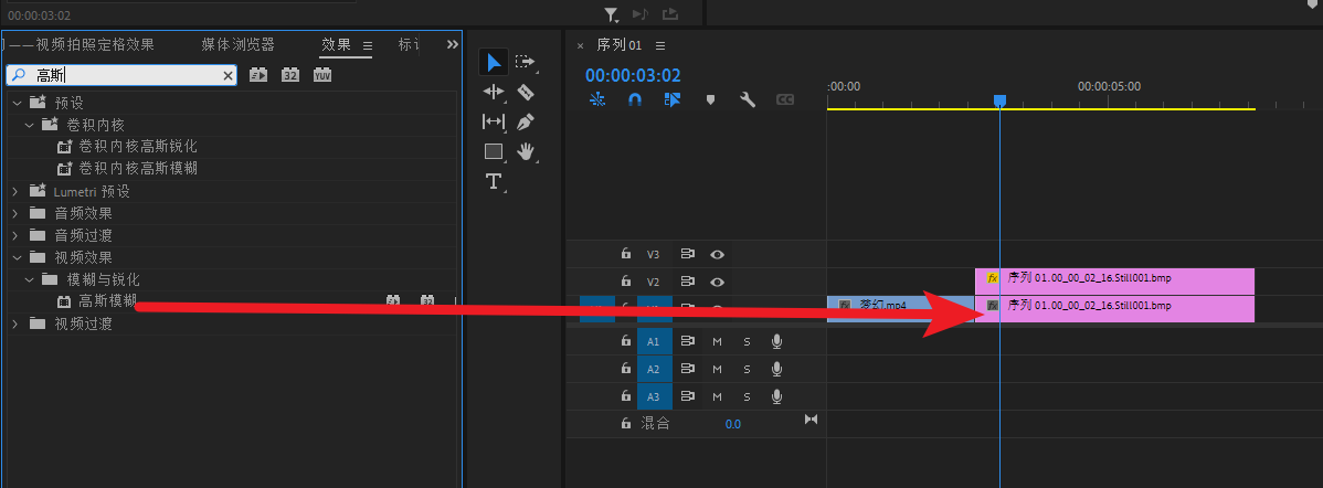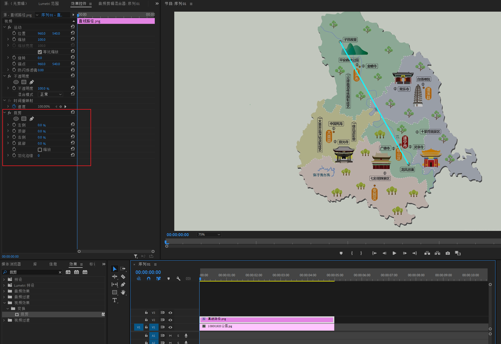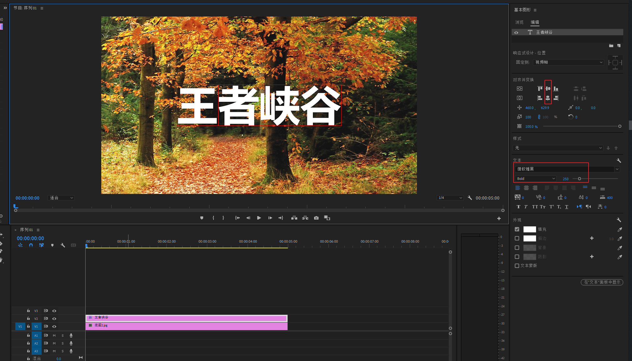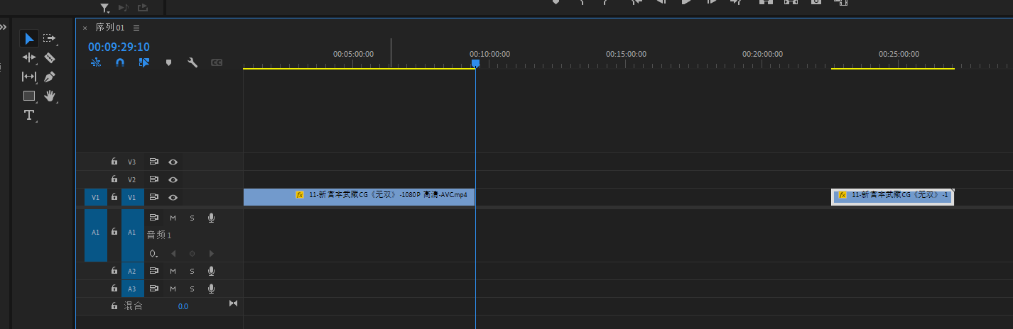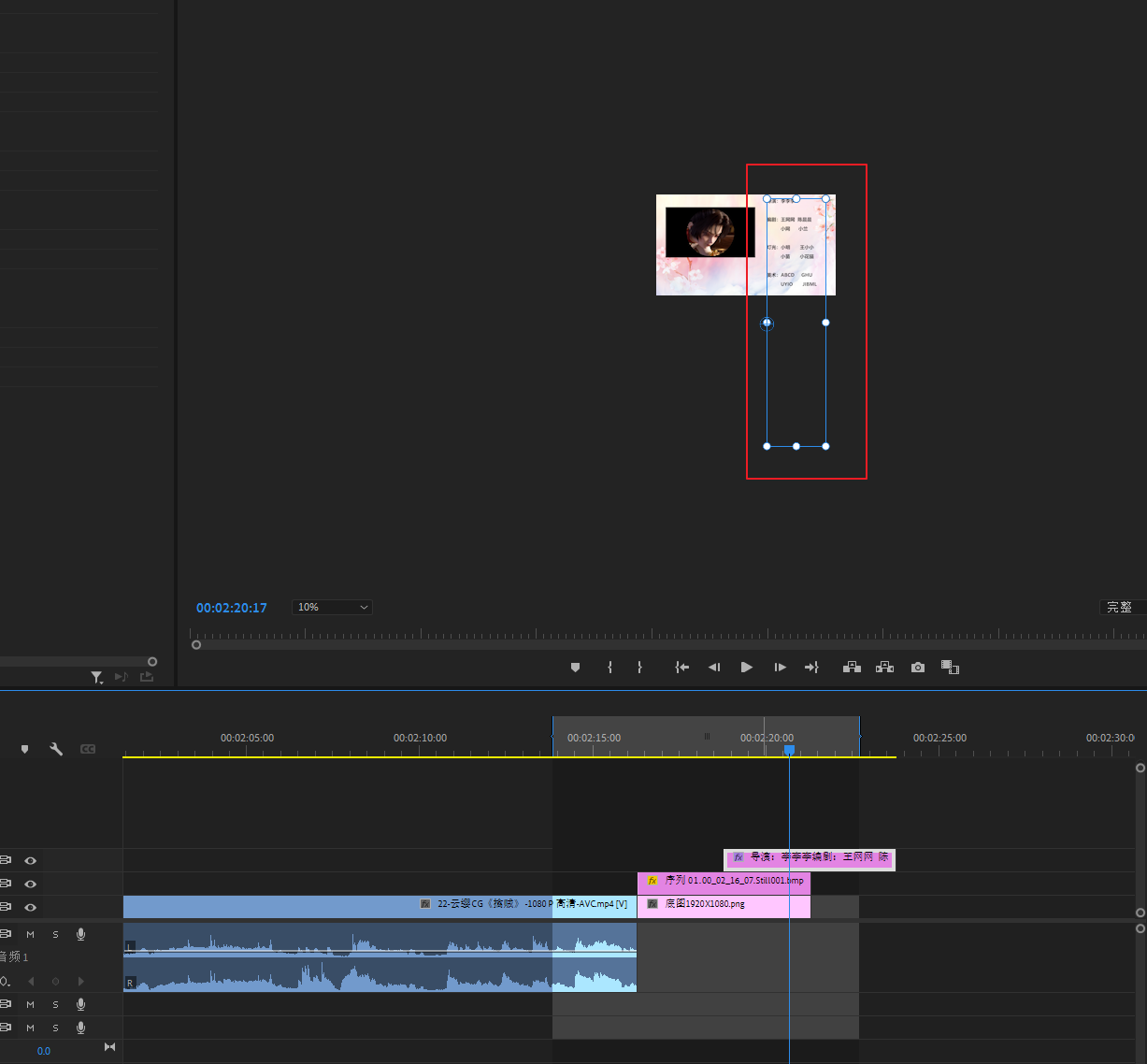 将底图素材导进PR,然后拖进V1轨道