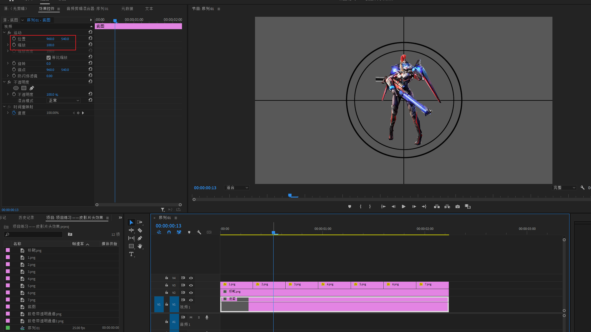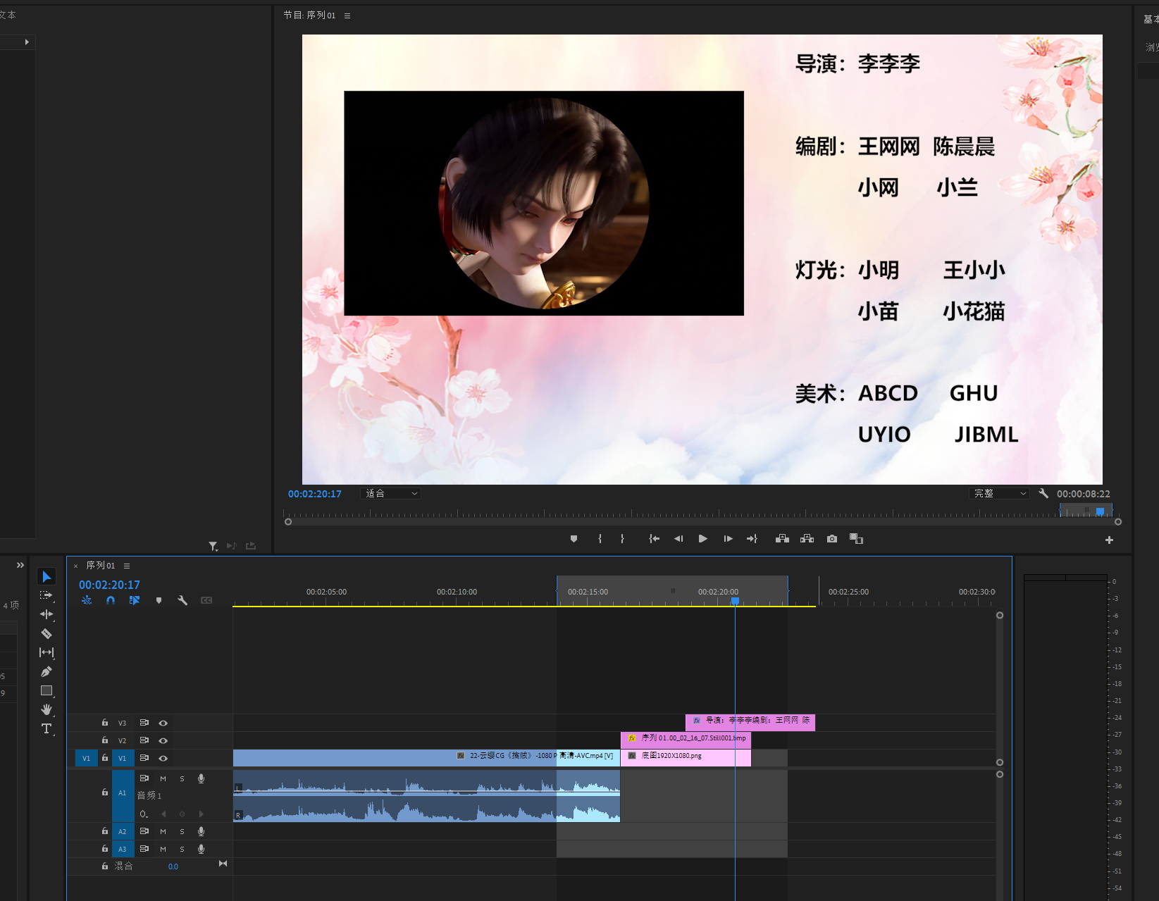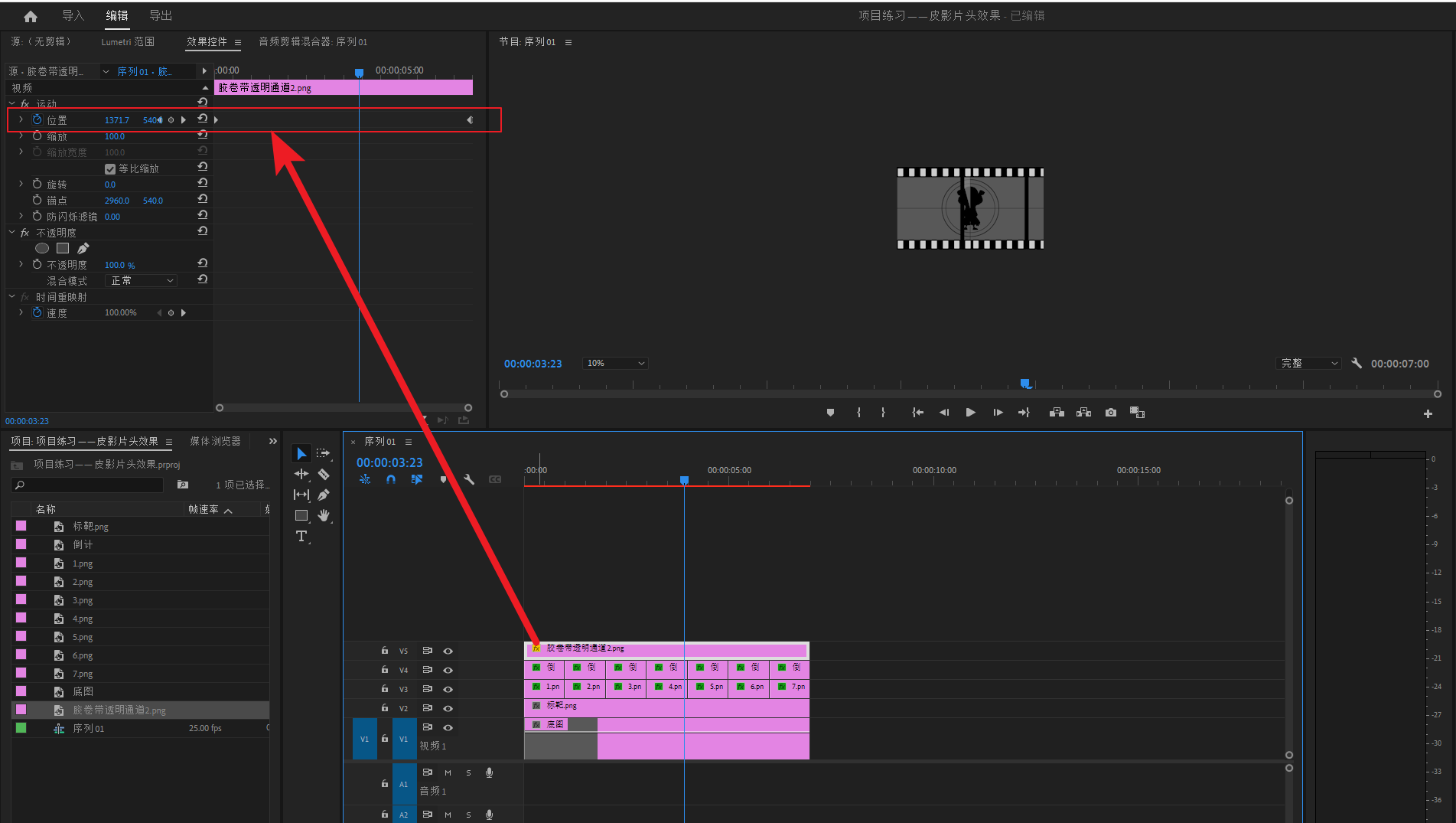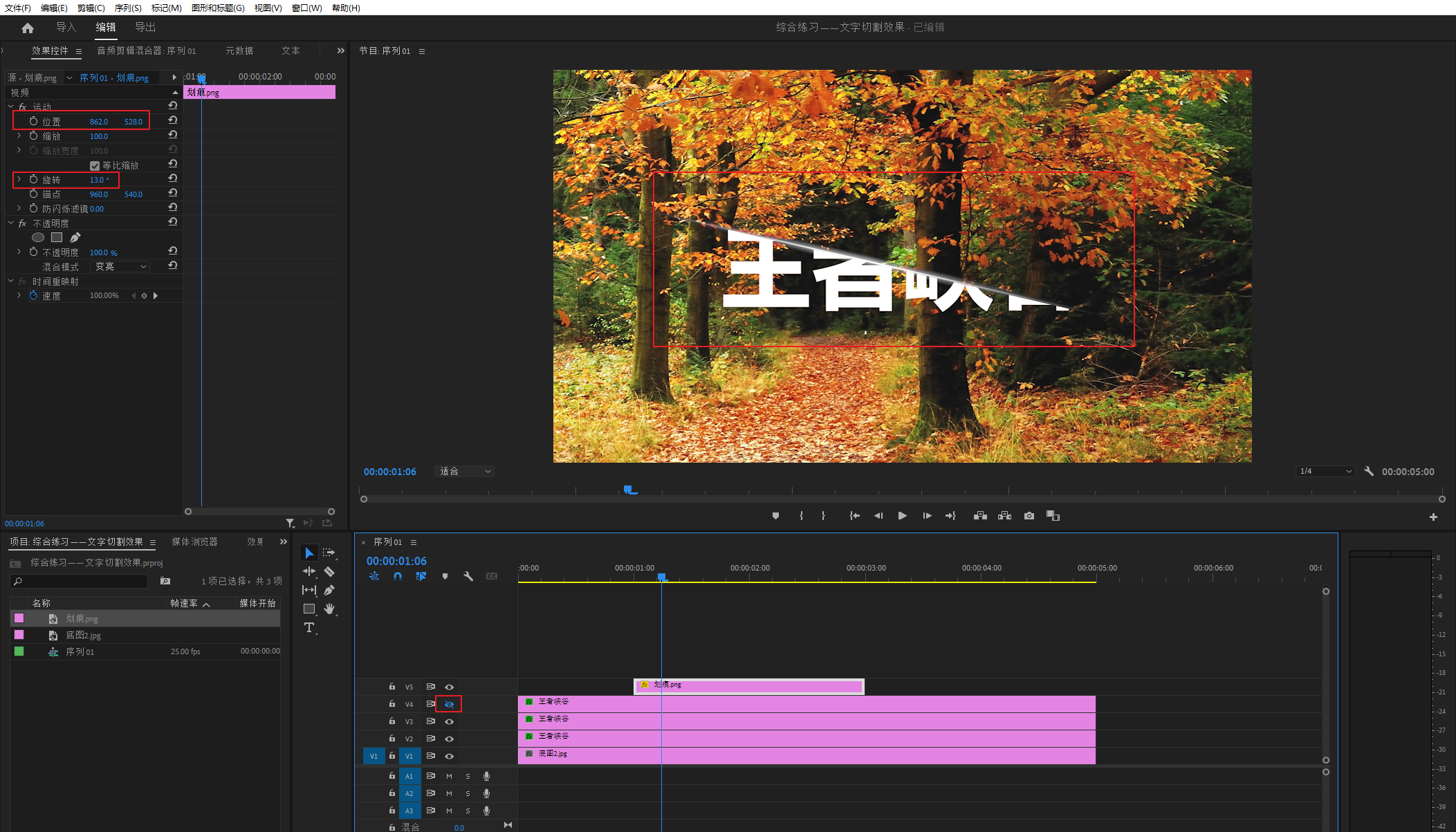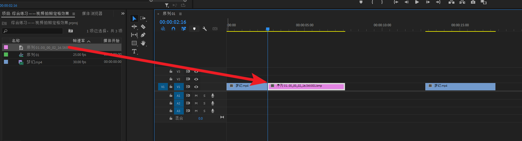 将底图素材导进PR,然后拖进V1轨道