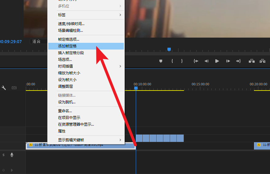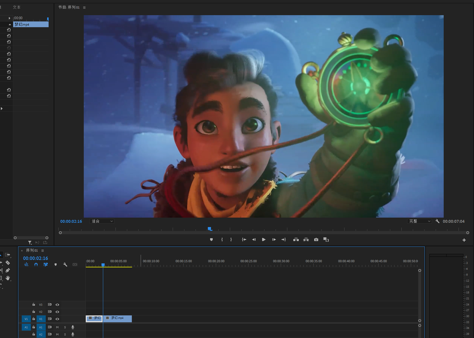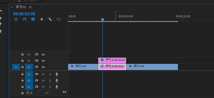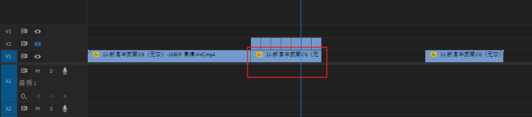 将素材视频复制一层,然后关闭V2层的显示