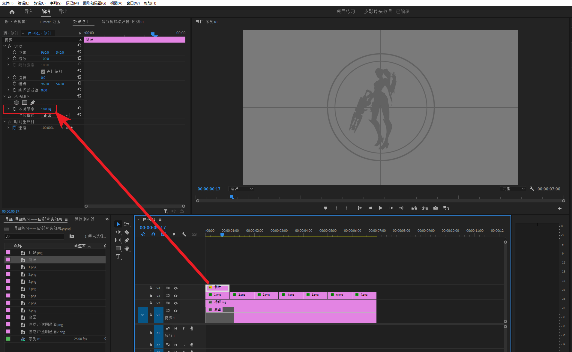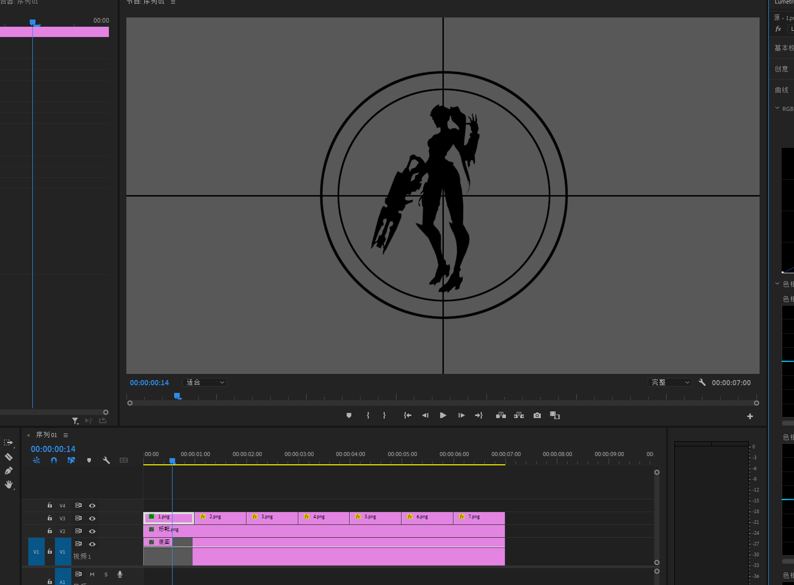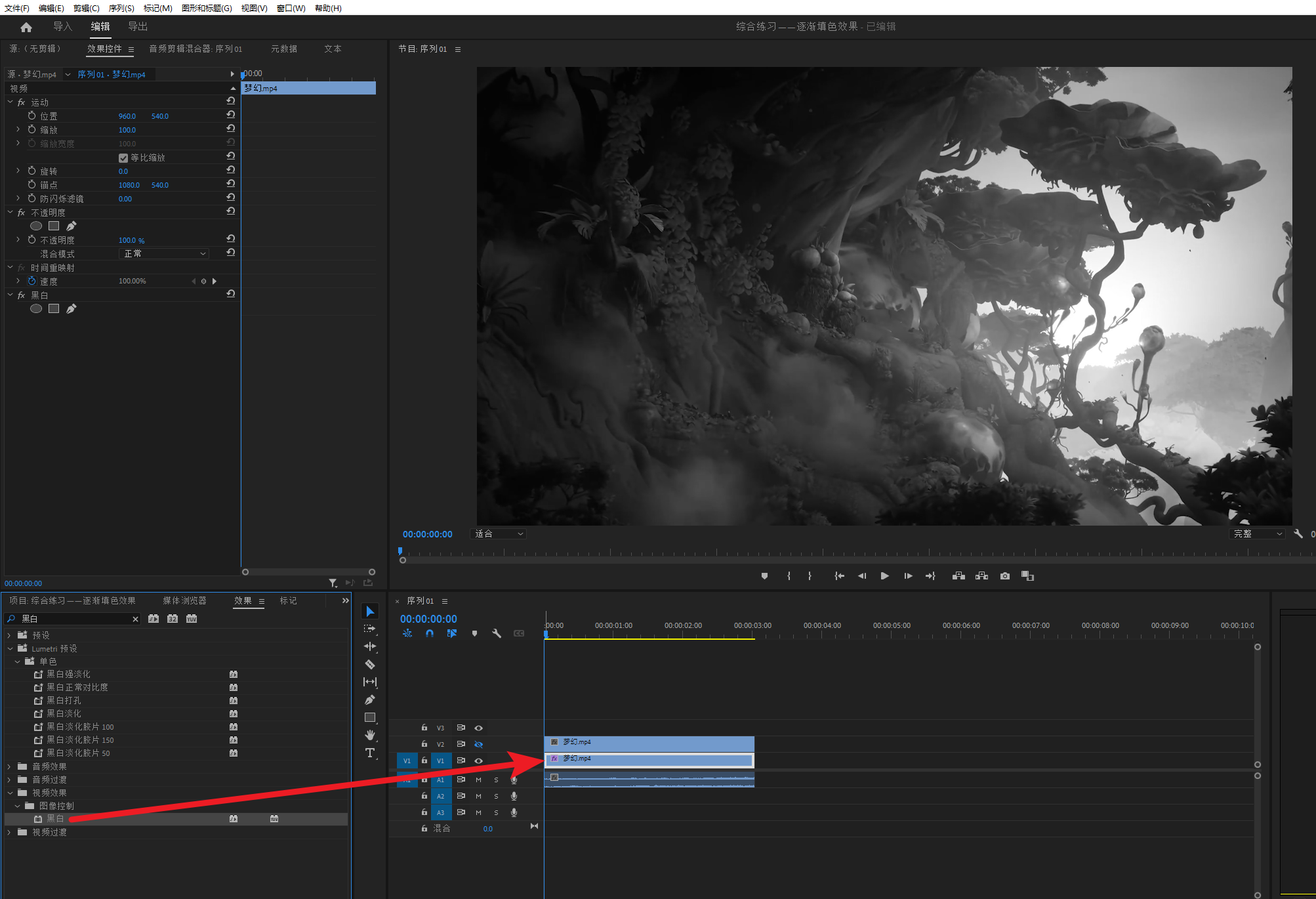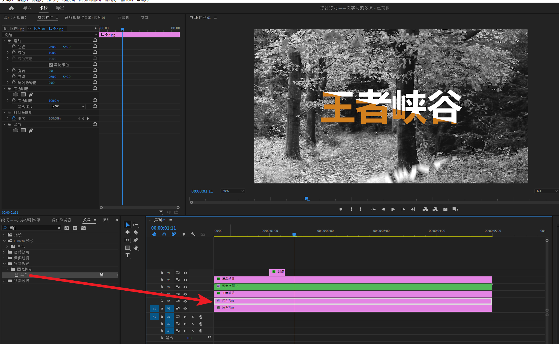 给V1层加上黑白效果,让V1层的素材变成黑白