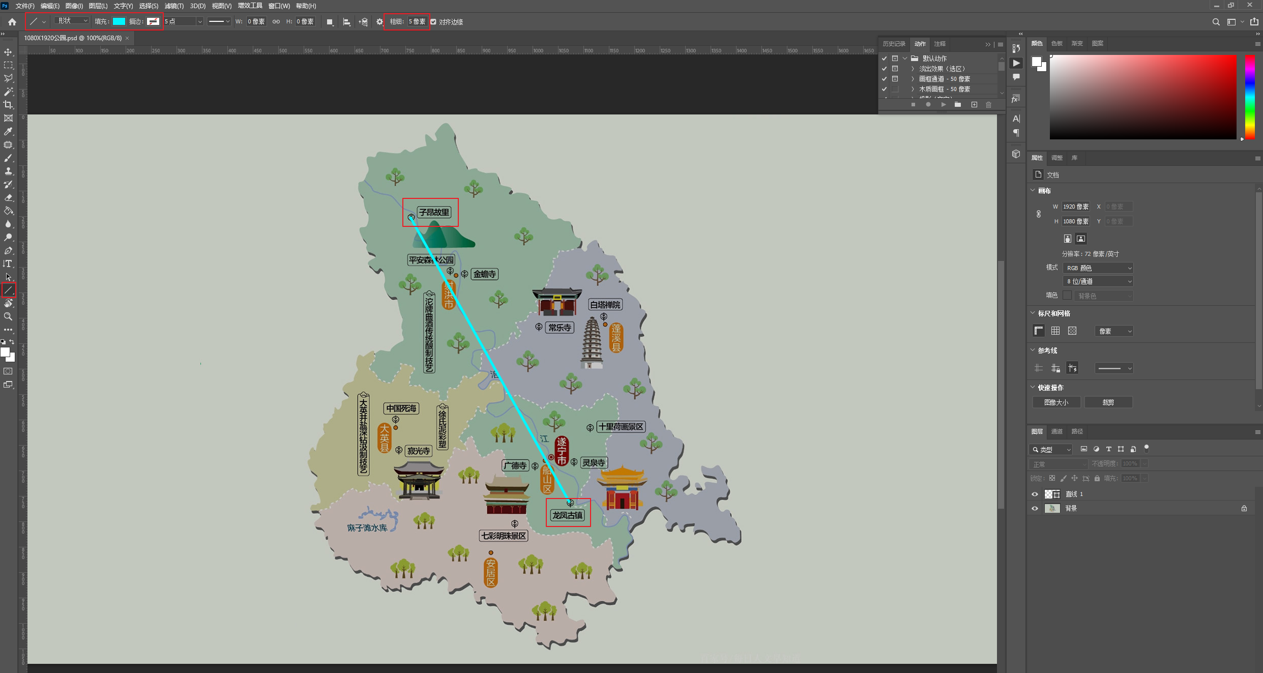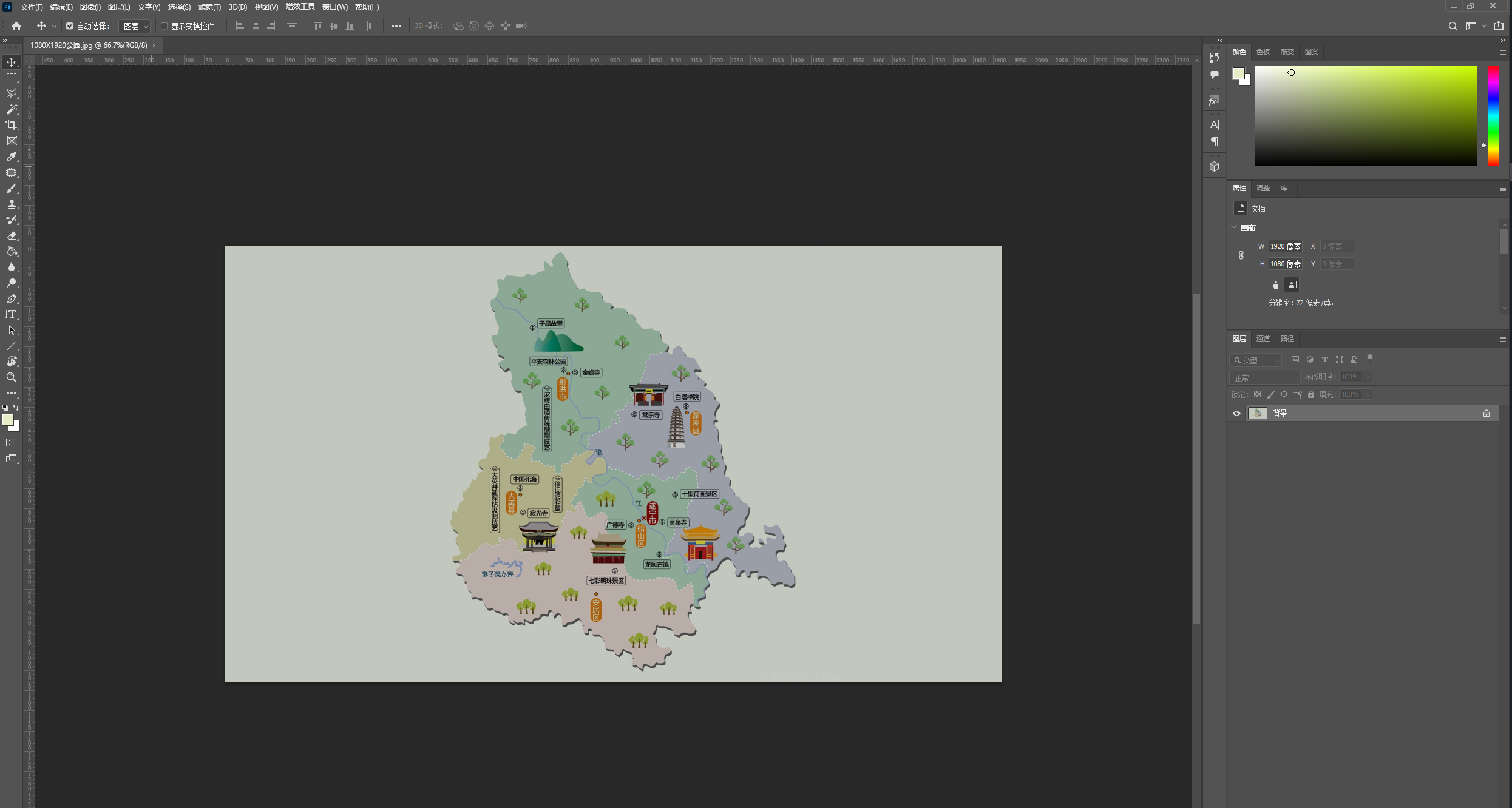 在PS中制作一张1920*1080像素的底图