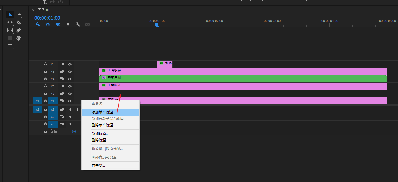 鼠标单击V1轨道,再点击新建单个轨道,创建一条在V1上面的空白轨道V2