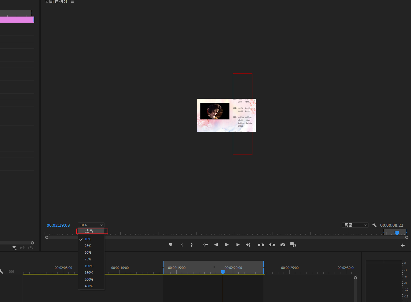 将预览窗口切换成10%观察,因为字幕太长