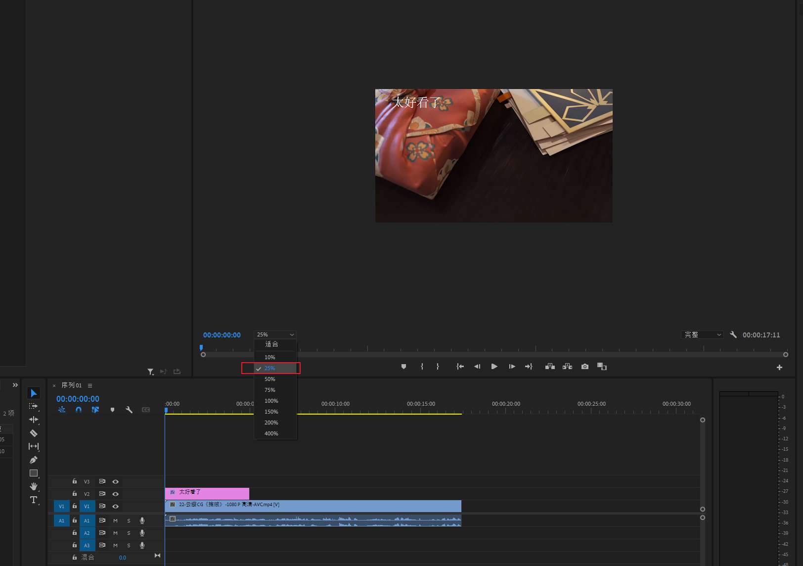 将预览窗口缩小至25%