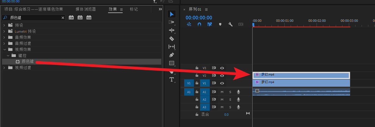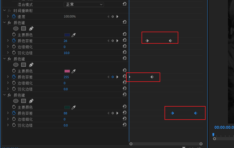 再次给V2轨道素材添加颜色键效果,对另一个颜色做同样的操作