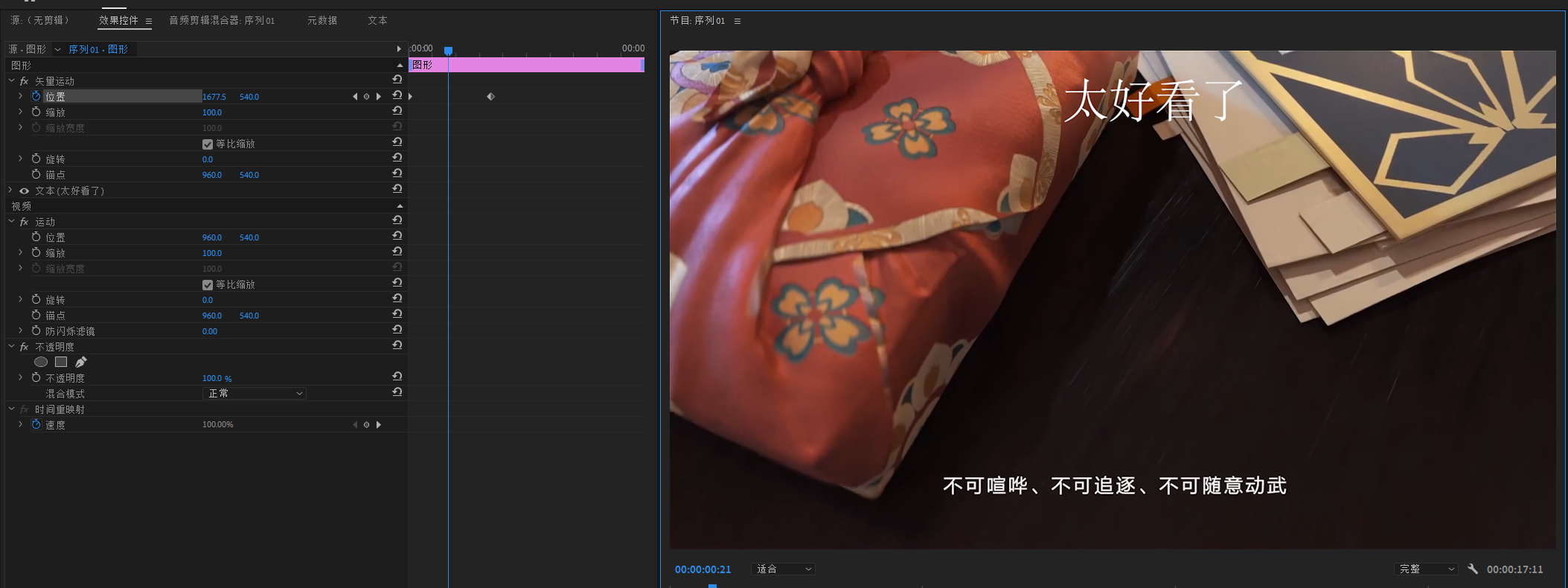 切换回合适画面,观察字幕的运动速度