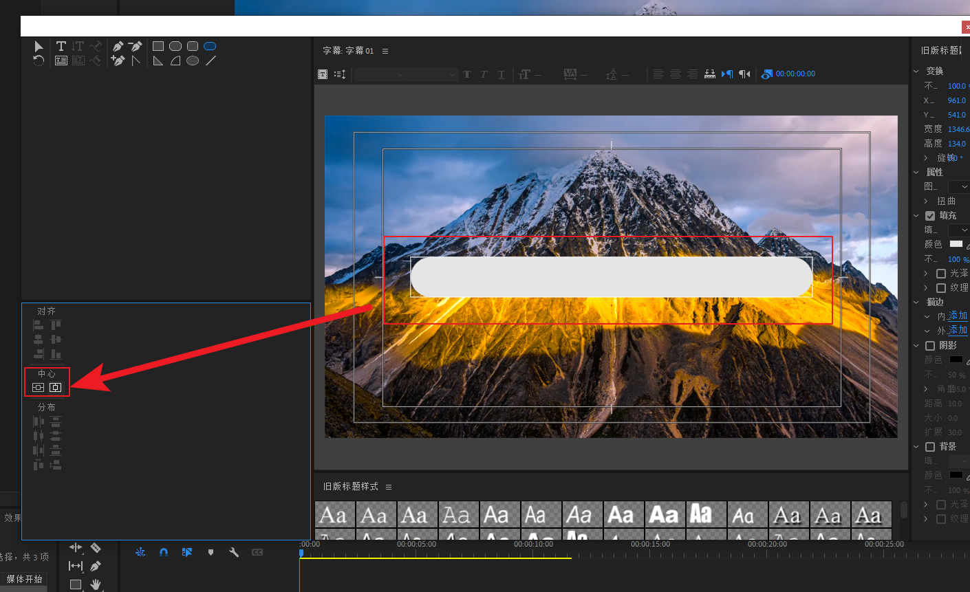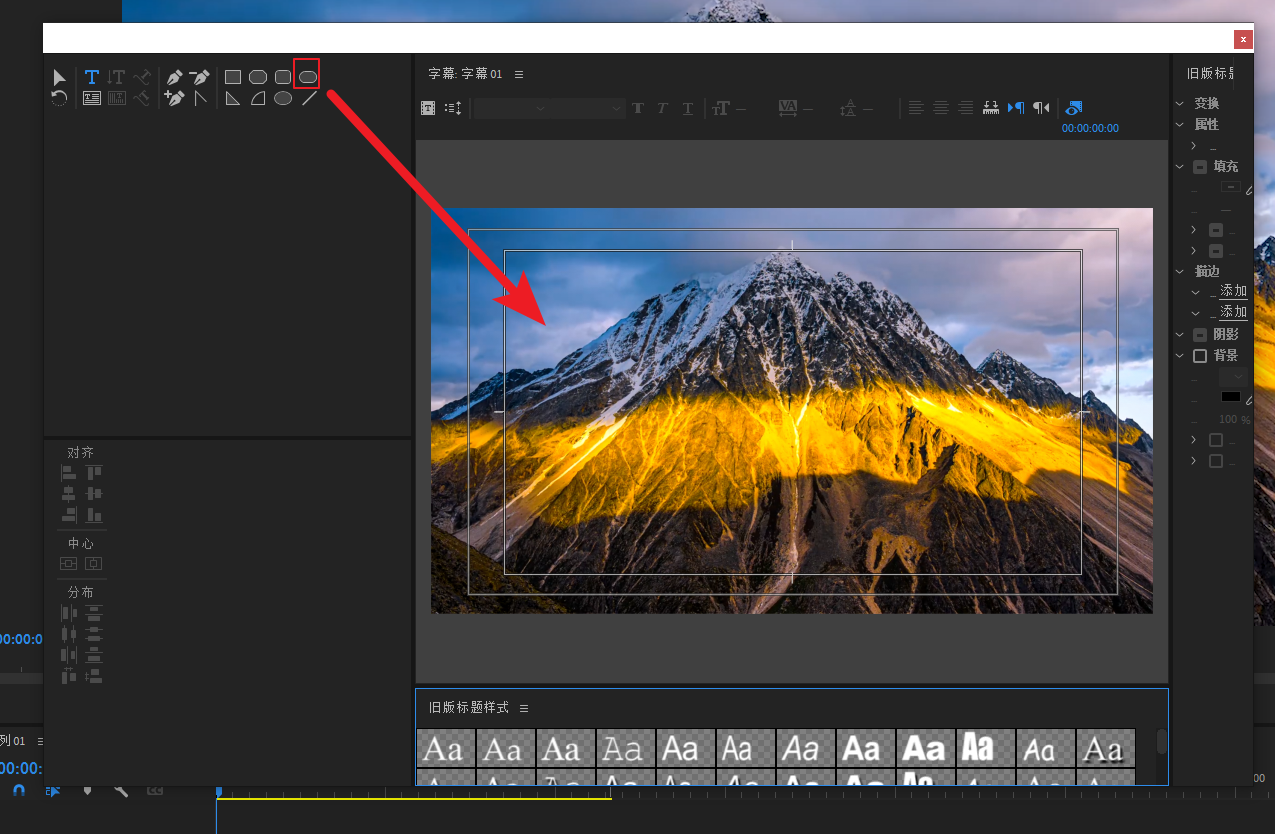 进到旧版标题面版,选择圆角矩形工具在视图中心画一个圆角矩形