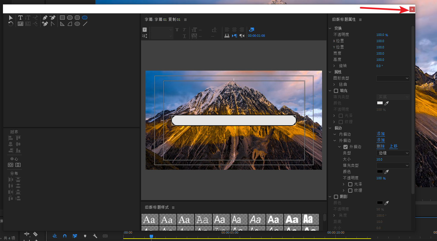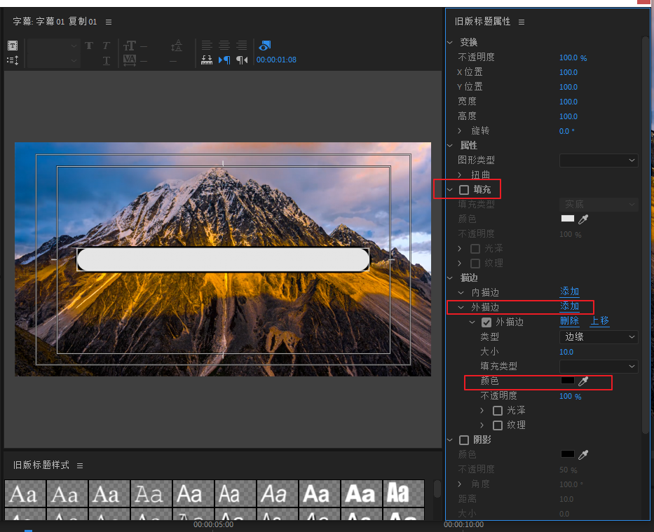 选中V3轨道的素材,双击进去将它改变成描边